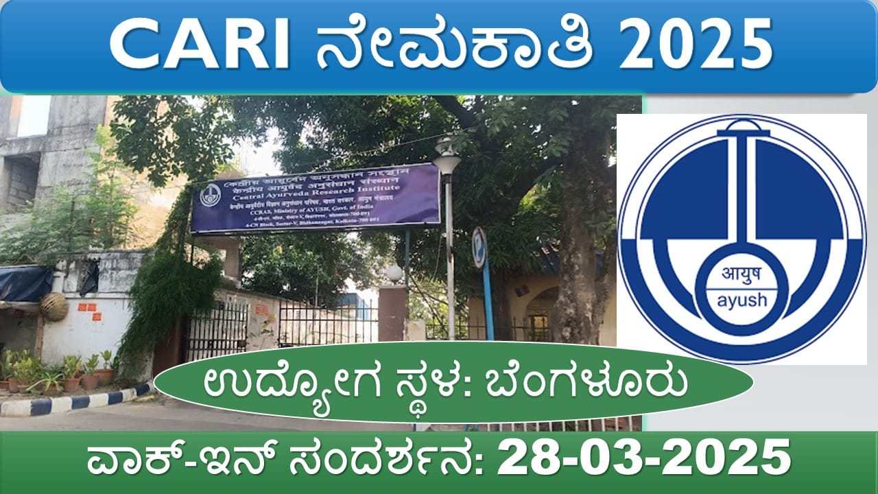 CARI ನೇಮಕಾತಿ 2025: ಸೆಂಟ್ರಲ್ ಆಯುರ್ವೇದ ರಿಸರ್ಚ್ ಇನ್ಸ್ಟಿಟ್ಯೂಟ್ (CARI) ಸಂಸ್ಥೆಯು 16 ಸಮಾಲೋಚಕರು (Consultant), ಹಿರಿಯ ಸಂಶೋಧನಾ ಸಹಾಯಕರು (SRF) ಹುದ್ದೆಗಳ ಭರ್ತಿಗಾಗಿ ಅರ್ಜಿಗಳನ್ನು ಆಹ್ವಾನಿಸಿದೆ.