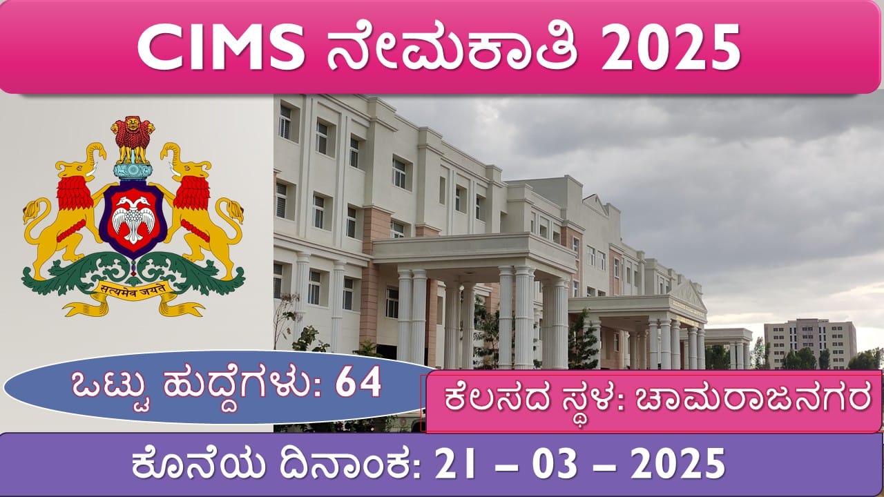 ಸಂಸ್ಥೆಯ ಹೆಸರು: ಚಾಮರಾಜನಗರ ವೈದ್ಯಕೀಯ ವಿಜ್ಞಾನ ಸಂಸ್ಥೆ (CIMS)ಒಟ್ಟು ಹುದ್ದೆಗಳು: 64ಉದ್ಯೋಗ ಸ್ಥಳ: ಚಾಮರಾಜನಗರ – ಕರ್ನಾಟಕಹುದ್ದೆಯ ಹೆಸರು: ಸಹಾಯಕ ಪ್ರಾಧ್ಯಾಪಕರು, ಟ್ಯುಟರ್ಗಳುವೇತನ: ₹50,000 – ₹81,250/-
