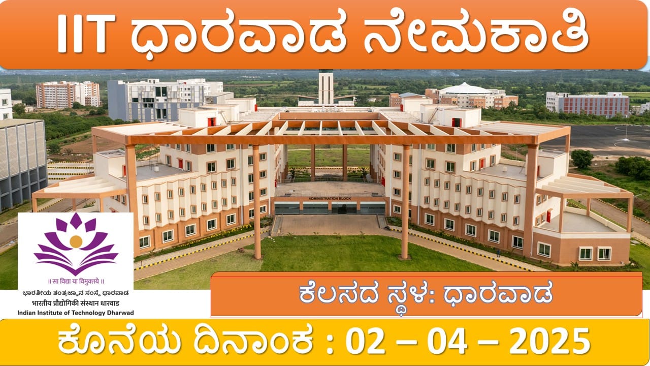 📢 ನೇಮಕಾತಿ ಮಾಹಿತಿ:ಭಾರತೀಯ ತಂತ್ರಜ್ಞಾನ ಸಂಸ್ಥೆ (IIT) ಧಾರವಾಡ ವೈದ್ಯಕೀಯ ಅಧಿಕಾರಿ ಹುದ್ದೆಗಳಿಗೆ (Medical Officer) 03 ಹುದ್ದೆಗಳ ನೇಮಕಾತಿಗಾಗಿ ಅರ್ಜಿಗಳನ್ನು ಆಹ್ವಾನಿಸಿದೆ. ಆಸಕ್ತ ಮತ್ತು ಅರ್ಹ