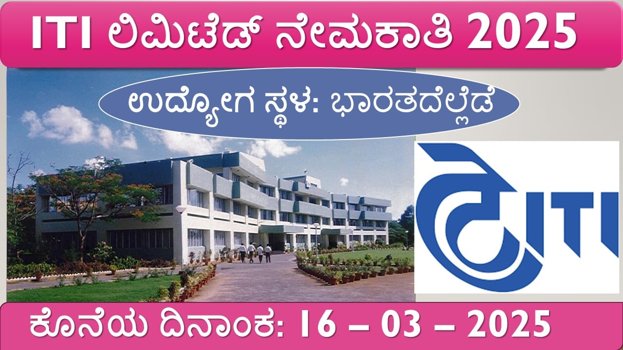 Indian Telephone Industries Limited (ITI Limited) 41 ಹುದ್ದೆಗಳ ನೇಮಕಾತಿಗೆ ಅಧಿಸೂಚನೆ ಹೊರಡಿಸಿದೆ. ಭಾರತದೆಲ್ಲೆಡೆ ಉದ್ಯೋಗ ಹುಡುಕುತ್ತಿರುವ ಅಭ್ಯರ್ಥಿಗಳಿಗೆ ಇದು ಉತ್ತಮ ಅವಕಾಶ.ಆಸಕ್ತ ಅಭ್ಯರ್ಥಿಗಳು 16