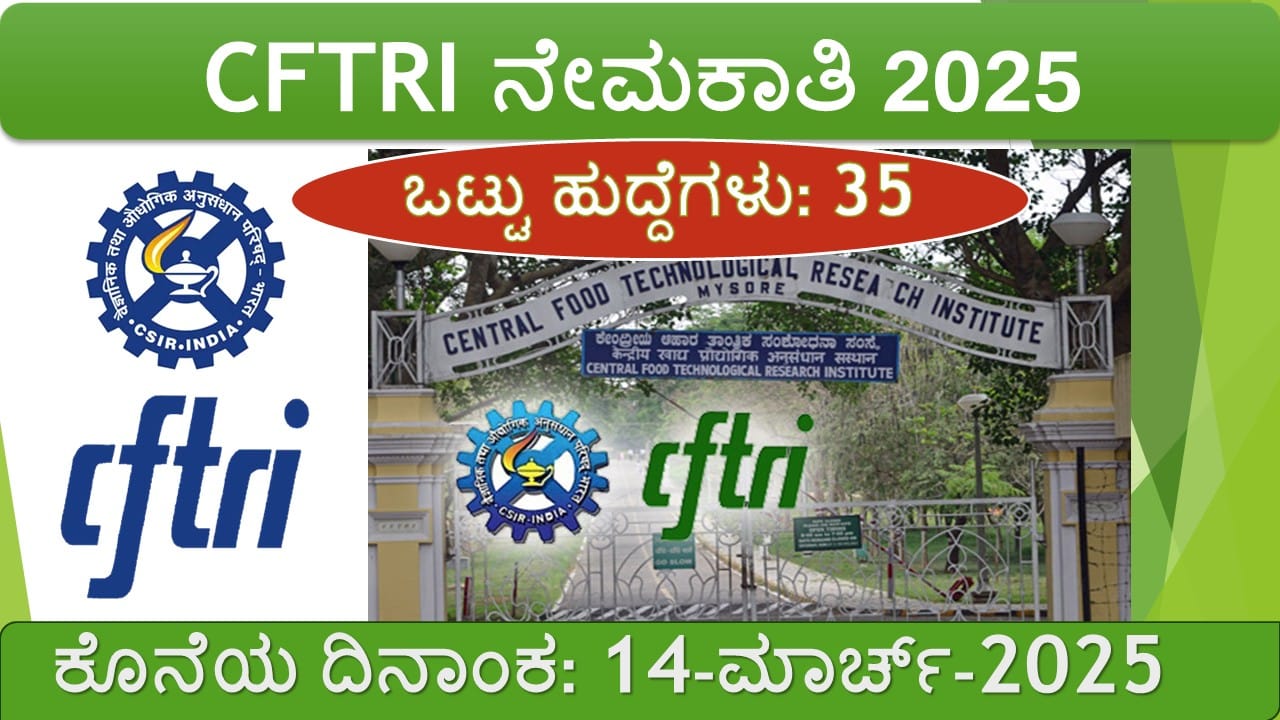 CFTRI (Central Food Technological Research Institute) ಅವರು 2025ರಲ್ಲಿ 35 ಸೈಂಟಿಸ್ಟ್ ಹುದ್ದೆಗಳಿಗೆ ಭರ್ತಿ ಮಾಡಲು ಅರ್ಹ ಮತ್ತು ಆಸಕ್ತಿ ಹೊಂದಿರುವ ಅಭ್ಯರ್ಥಿಗಳಿಂದ ಅರ್ಜಿ ಕೋರಿಕೆಗಳನ್ನು