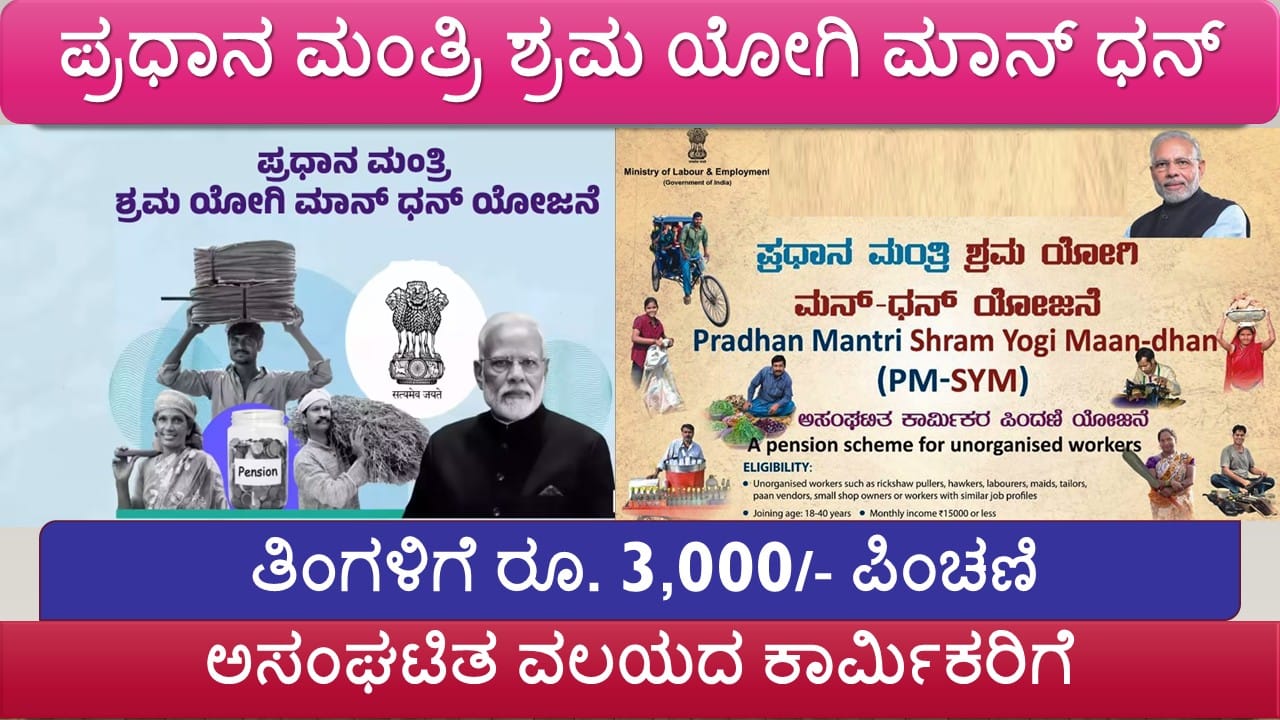 ಪ್ರಧಾನ ಮಂತ್ರಿ ಶ್ರಮ ಯೋಗಿ ಮಾನ್ ಧನ್ (PM-SYM) ಅಸಂಘಟಿತ ವಲಯದ ಕಾರ್ಮಿಕರಿಗೆ ವೃದ್ಧಾಪ್ಯದಲ್ಲಿ ಆರ್ಥಿಕ ಭದ್ರತೆ ಒದಗಿಸುವ ಕೇಂದ್ರ ಸರ್ಕಾರದ ಸ್ವಯಂಪ್ರೇರಿತ ಮತ್ತು ಕೊಡುಗೆ ಆಧಾರಿತ