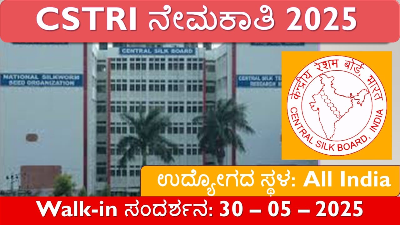 ಸಂಸ್ಥೆ: Central Silk Technological Research Institute (CSTRI)ಹುದ್ದೆಗಳ ಸಂಖ್ಯೆ: 60ಉದ್ಯೋಗ ಸ್ಥಳ: All Indiaಹುದ್ದೆಗಳ ಹೆಸರು: Master Reelers, Technicians, Weavers, Dyersವೇತನ: ₹21,000/- ಪ್ರತಿಮಾಸ