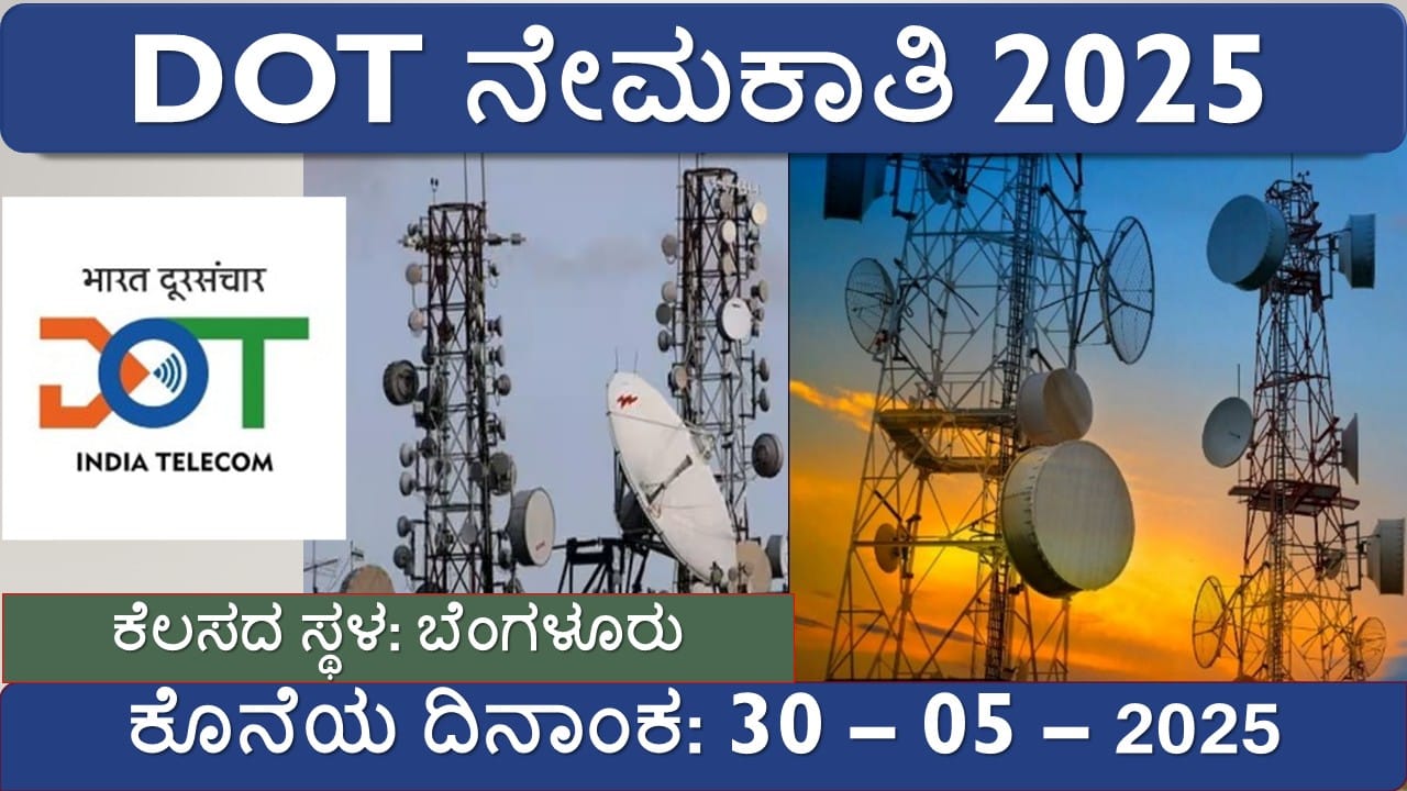 DOT Recruitment 2025: ಕೇಂದ್ರ ಸರ್ಕಾರದ ದೂರಸಂಪರ್ಕ ಇಲಾಖೆ (Department of Telecommunication) ಬೆಂಗಳೂರು ಶಾಖೆಯಲ್ಲಿ ಸಂಶೋಧನಾ ಸಹಾಯಕ (Research Associates) ಹುದ್ದೆಗಳಿಗೆ ಅರ್ಹ ಅಭ್ಯರ್ಥಿಗಳಿಂದ ಅರ್ಜಿಗಳನ್ನು