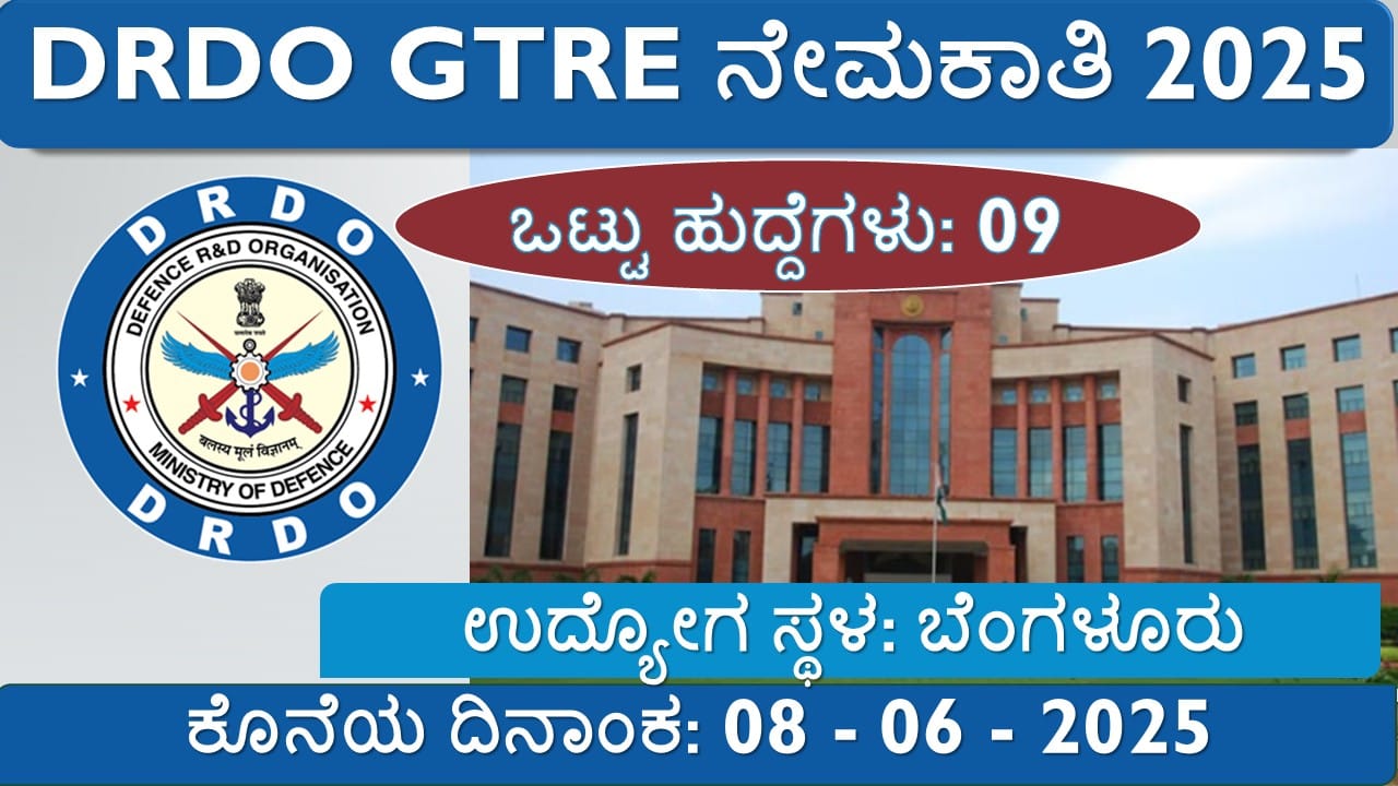 ರಕ್ಷಣಾ ಸಂಶೋಧನೆ ಮತ್ತು ಅಭಿವೃದ್ಧಿ ಸಂಸ್ಥೆ (DRDO) – ಗ್ಯಾಸು ಟರ್ಬೈನ್ ರಿಸರ್ಚ್ ಎಸ್ಟಾಬ್ಲಿಶ್ಮೆಂಟ್ (GTRE) ವಿವಿಧ ಕನ್ಸಲ್ಟೆಂಟ್ (Consultant) ಹುದ್ದೆಗಳಿಗೆ ಅರ್ಹ ಅಭ್ಯರ್ಥಿಗಳಿಂದ ಅರ್ಜಿ ಆಹ್ವಾನಿಸಿದೆ.