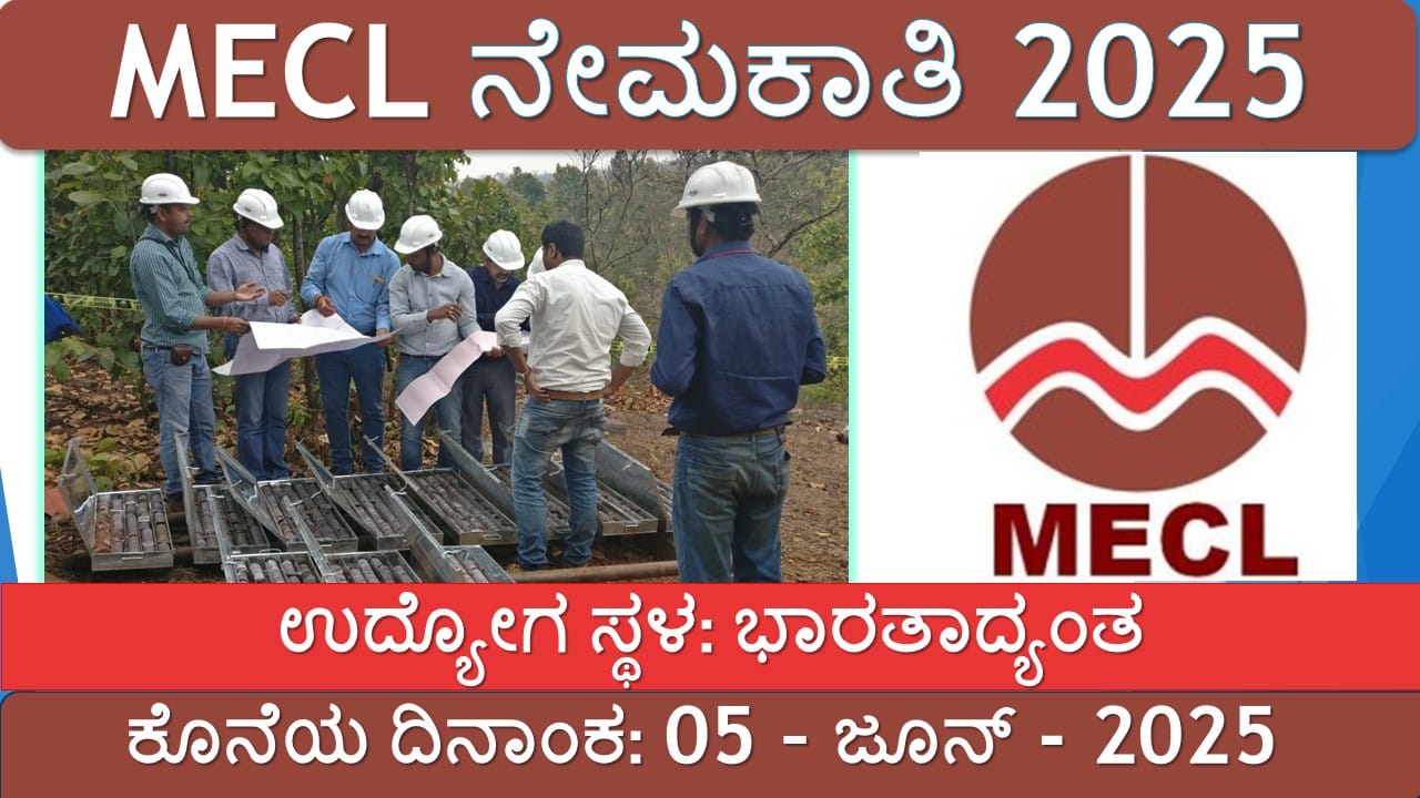 ಮಿನರಲ್ ಎಕ್ಸ್ಪ್ಲೊರೇಷನ್ & ಕನ್ಸಲ್ಟನ್ಸಿ ಲಿಮಿಟೆಡ್ (MECL) 2025ನೇ ಸಾಲಿನಲ್ಲಿ 30 ಎಕ್ಸಿಕ್ಯೂಟಿವ್ ಟ್ರೈನಿ (Executive Trainee) ಹುದ್ದೆಗಳಿಗೆ ಅರ್ಜಿ ಆಹ್ವಾನಿಸಿದೆ. ಇಡೀ ಭಾರತವ್ಯಾಪಿ ನೇಮಕಾತಿ ನಡೆಯಲಿದ್ದು,
