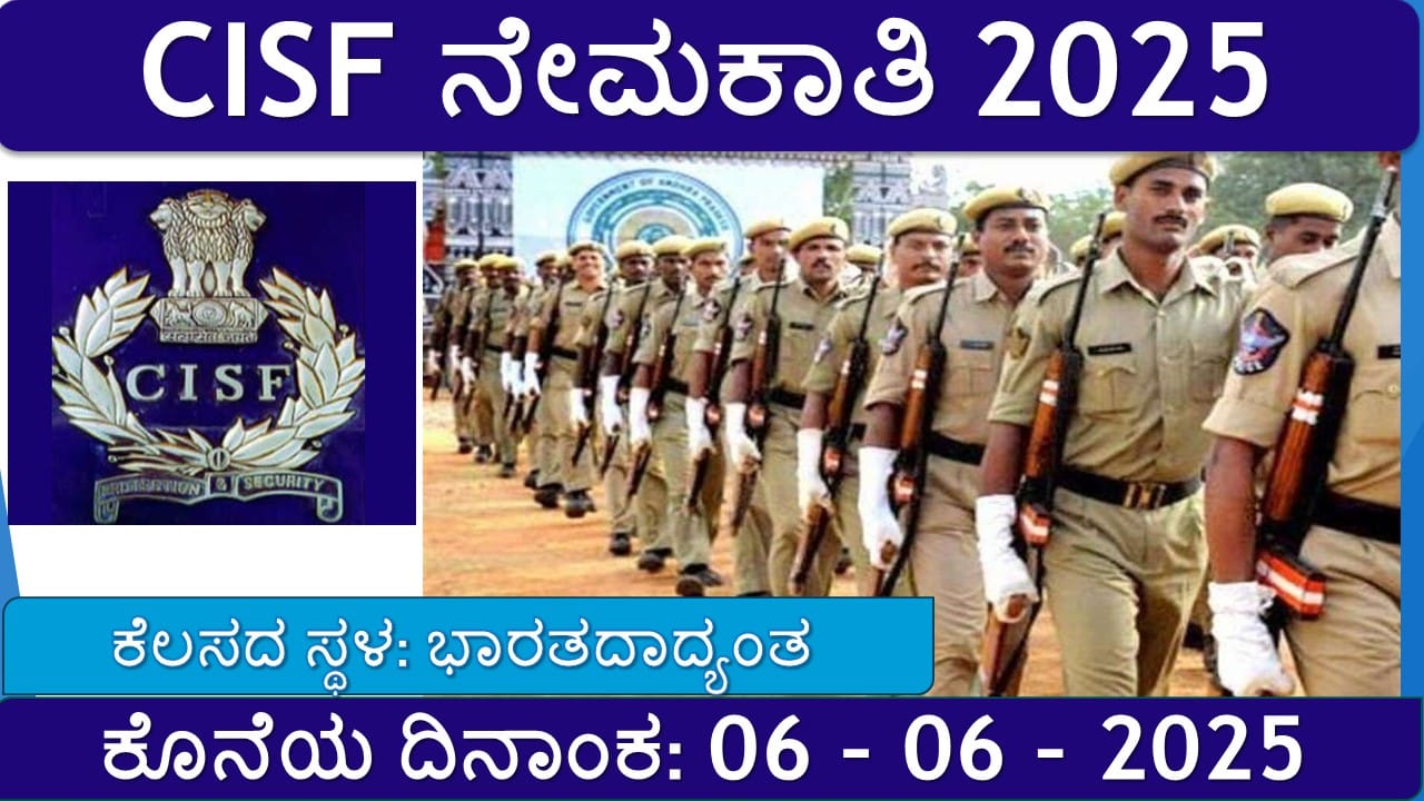 ಸೆಂಟ್ರಲ್ ಇಂಡಸ್ಟ್ರಿಯಲ್ ಸೆಕ್ಯೂರಿಟಿ ಫೋರ್ಸ್ (CISF) ನವರು 403 ಹೆಡ್ ಕಾನ್ಸ್ಟೇಬಲ್ (General Duty) ಹುದ್ದೆಗಳಿಗೆ ಅರ್ಜಿ ಆಹ್ವಾನಿಸಿದ್ದಾರೆ. ಆಸಕ್ತರು 2025ರ ಜೂನ್ 6ರ ಒಳಗೆ CISF