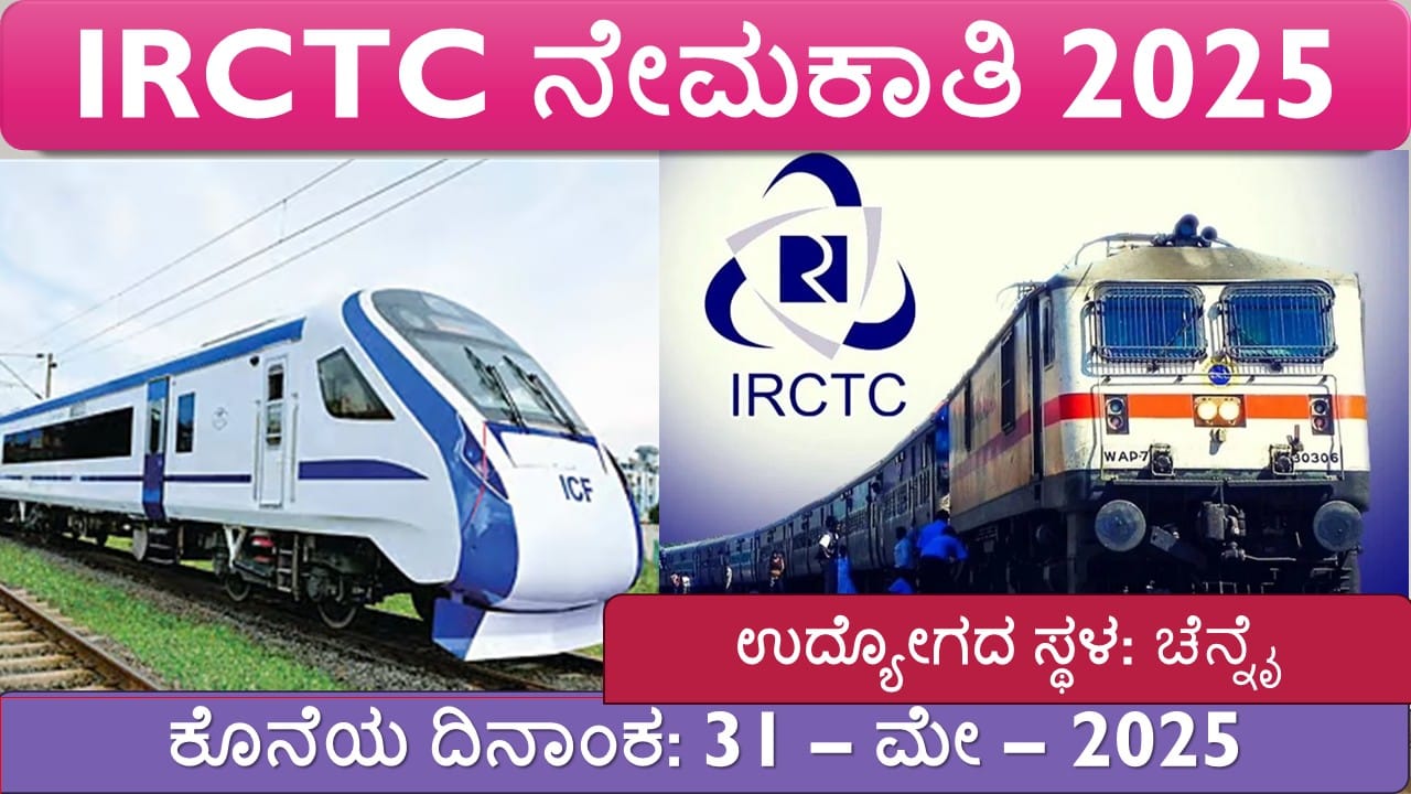 IRCTC Recruitment 2025: ಇಂಡಿಯನ್ ರೈಲ್ವೇ ಕ್ಯಾಟರಿಂಗ್ ಅಂಡ್ ಟೂರಿಸಂ ಕಾರ್ಪೊರೇಷನ್ (IRCTC) ತನ್ನ ಚೆನ್ನೈ (ತಮಿಳುನಾಡು) ಶಾಖೆಯಲ್ಲಿ ಕನ್ಸಲ್ಟೆಂಟ್ ಹುದ್ದೆಗೆ ಅರ್ಹ ಅಭ್ಯರ್ಥಿಗಳಿಂದ ಅರ್ಜಿ ಆಹ್ವಾನಿಸಿದೆ.
