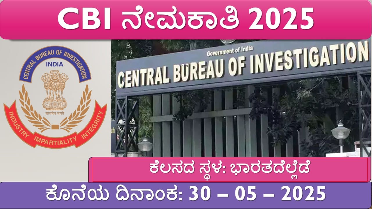 ಸೆಂಟ್ರಲ್ ಬ್ಯೂರೋ ಆಫ್ ಇನ್ವೆಸ್ಟಿಗೇಶನ್ (CBI) ತನ್ನ ಅಧಿಕೃತ ಅಧಿಸೂಚನೆಯ ಮೂಲಕ 30 ಇಂಟರ್ನ್ ಹುದ್ದೆಗಳಿಗೆ ಅರ್ಜಿ ಆಹ್ವಾನಿಸಿದೆ. ಈ ಹುದ್ದೆಗಳು ಲಖನೌ, ಬೆಂಗಳೂರು, ಮುಂಬೈ, ಕೋಲ್ಕತ್ತಾ