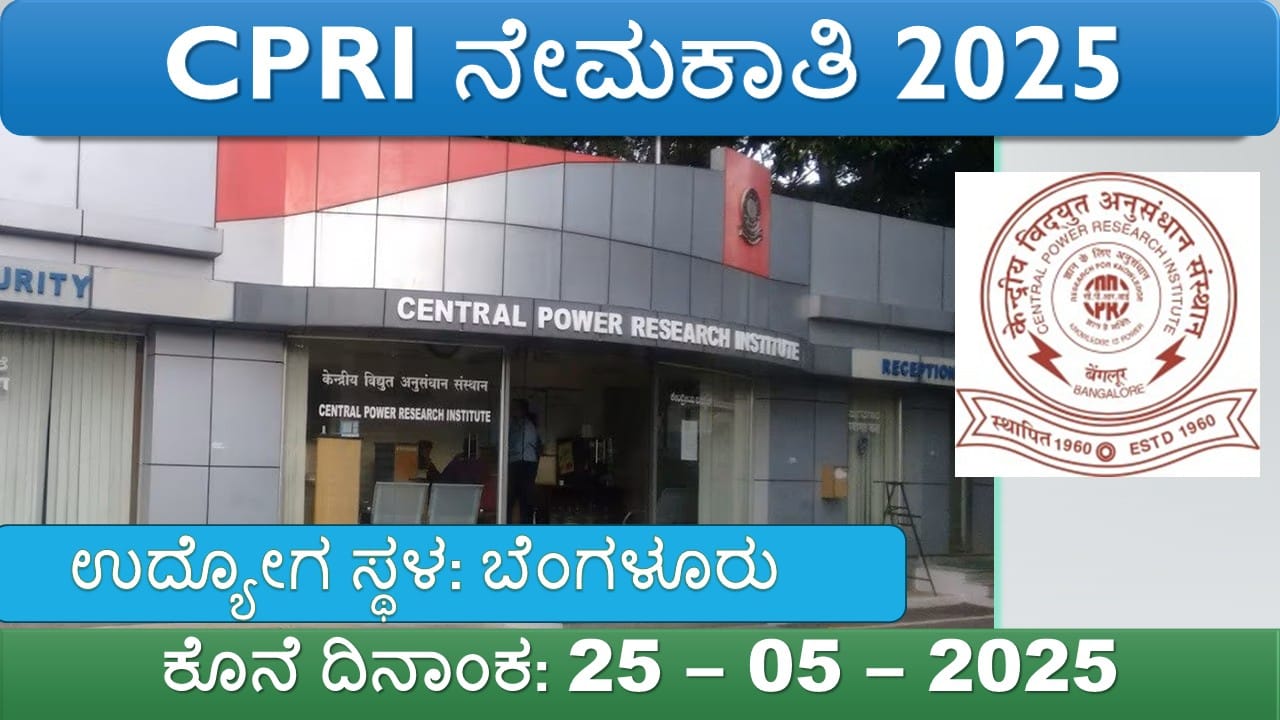 ಸೆಂಟ್ರಲ್ ಪವರ್ ರಿಸರ್ಚ್ ಇನ್ಸ್ಟಿಟ್ಯೂಟ್ (CPRI) ನಿಂದ 44 ಹುದ್ದೆಗಳ ನೇಮಕಾತಿಗೆ ಅಧಿಸೂಚನೆ ಪ್ರಕಟಿಸಲಾಗಿದೆ. ಬೆಂಗಳೂರು – ಕರ್ನಾಟಕದಲ್ಲಿ ಸರ್ಕಾರಿ ಉದ್ಯೋಗವನ್ನು ಹುಡುಕುತ್ತಿರುವ ಅಭ್ಯರ್ಥಿಗಳಿಗೆ ಇದು ಉತ್ತಮ