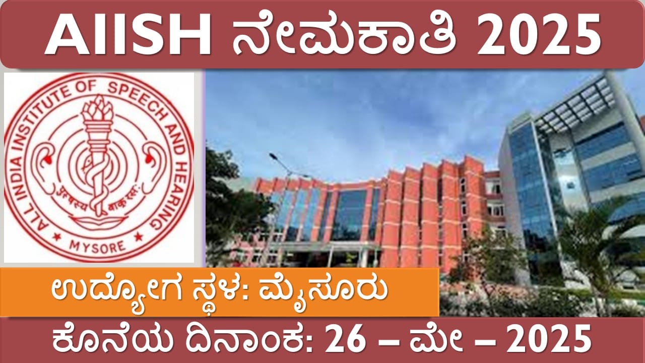 ಆಲ್ ಇಂಡಿಯಾ ಇನ್ಸ್ಟಿಟ್ಯೂಟ್ ಆಫ್ ಸ್ಪೀಚ್ ಅಂಡ್ ಹೆಯರಿಂಗ್ (AIISH), ಮೈಸೂರು ನೇ 2025ರ ಮೇನಲ್ಲಿ ಪ್ರಕಟಿಸಿರುವ ಅಧಿಸೂಚನೆಯಂತೆ Audiologist ಹಾಗೂ Speech Language Pathologist ಹುದ್ದೆಗಳಿಗೆ