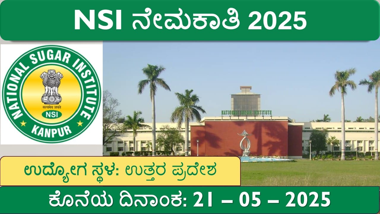 NSI ನೇಮಕಾತಿ 2025: ನ್ಯಾಷನಲ್ ಶುಗರ್ ಇನ್ಸ್ಟಿಟ್ಯೂಟ್ (NSI) ಕಾನ್ಪುರ್, ಉತ್ತರ ಪ್ರದೇಶದಲ್ಲಿ 2 ಸ್ಟೋರ್ ಕೀಪರ್ ಗ್ರೇಡ್-I ಹುದ್ದೆಗಳಿಗೆ ಆಫ್ಲೈನ್ ಅರ್ಜಿಗಳನ್ನು ಆಹ್ವಾನಿಸಿದೆ. ಆಸಕ್ತಿ ಹೊಂದಿರುವ ಅಭ್ಯರ್ಥಿಗಳು 21-ಮೇ-2025