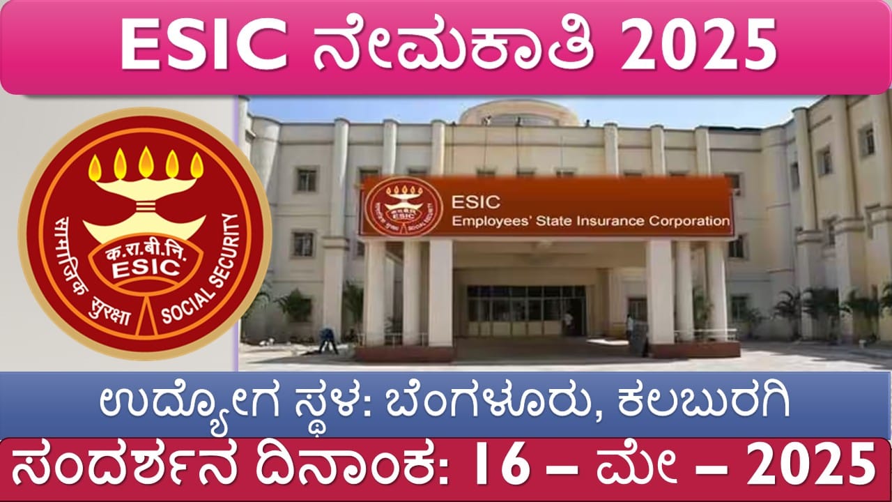Employees’ State Insurance Corporation (ESIC) ಕರ್ನಾಟಕ 2025ರ ನೇಮಕಾತಿ ಪ್ರಕಟಣೆ ಹೊರಡಿಸಿದ್ದು, 06 ಕಿರಿಯ ಮತ್ತು ಹಿರಿಯ ನಿವಾಸಿಗಳ (Junior & Senior Residents) ಹುದ್ದೆಗಳಿಗೆ