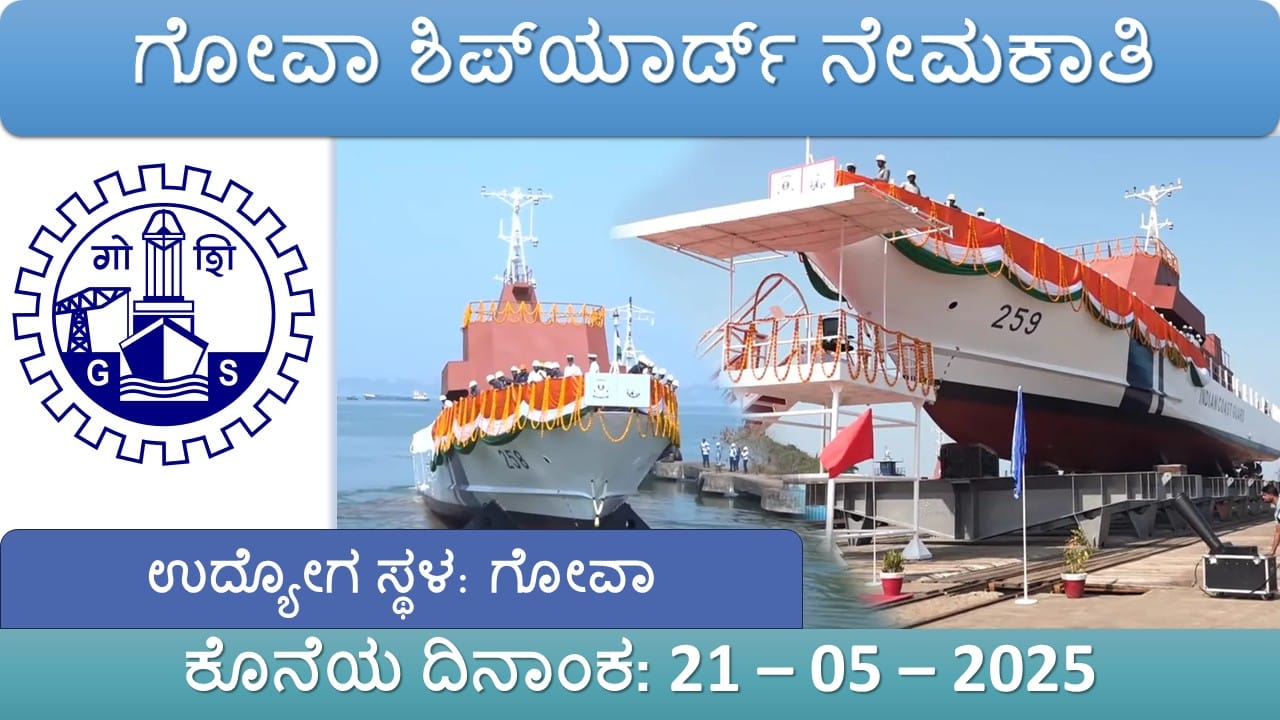 ಗೋವಾ ಶಿಪ್ಯಾರ್ಡ್ ಲಿಮಿಟೆಡ್ (Goa Shipyard) ಸಂಸ್ಥೆ 04 ಕನ್ಸಲ್ಟೆಂಟ್ (Consultant) ಹುದ್ದೆಗಳ ಭರ್ತಿಗೆ ಅಧಿಕೃತ ಅಧಿಸೂಚನೆ ಹೊರಡಿಸಿದೆ. ಆಸಕ್ತರು 21-ಮೇ-2025ರೊಳಗೆ ಆಫ್ಲೈನ್ ಮೂಲಕ ಅರ್ಜಿ ಸಲ್ಲಿಸಬಹುದಾಗಿದೆ.