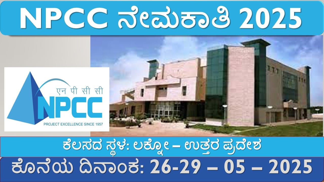 ಸಂಸ್ಥೆ ಹೆಸರು: ನ್ಯಾಷನಲ್ ಪ್ರಾಜೆಕ್ಟ್ಸ್ ಕನ್ಸ್ಟ್ರಕ್ಷನ್ ಕಾರ್ಪೊರೇಶನ್ ಲಿಮಿಟೆಡ್ (NPCC) ಒಟ್ಟು ಹುದ್ದೆಗಳು: 25 ಕೆಲಸದ ಸ್ಥಳ: ಲಕ್ನೋ – ಉತ್ತರ ಪ್ರದೇಶ ಹುದ್ದೆಗಳ ವಿವರಗಳು ಮತ್ತು