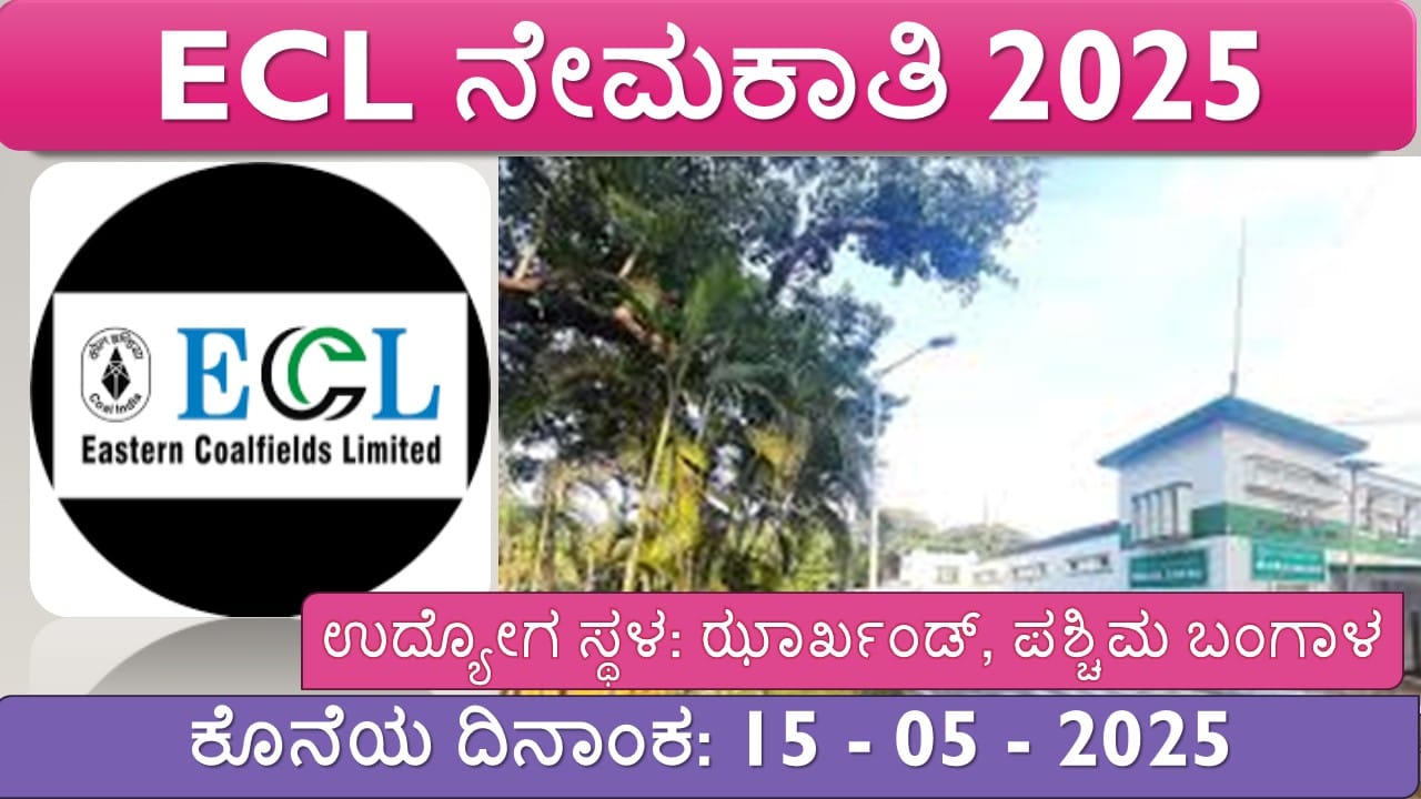 ECL ನೇಮಕಾತಿ 2025: ಈಸ್ಟರ್ನ್ ಕೋಲ್ಫೀಲ್ಡ್ಸ್ ಲಿಮಿಟೆಡ್ (ECL) ವತಿಯಿಂದ 50 ನಿವೃತ್ತ ವಿದ್ಯುತ್ ಪರ್ಯವೇಕ್ಷಕ (Retired Electrical Supervisor) ಹುದ್ದೆಗಳಿಗೆ ಅರ್ಜಿ ಆಹ್ವಾನಿಸಲಾಗಿದೆ. ಈ ನೇಮಕಾತಿ
