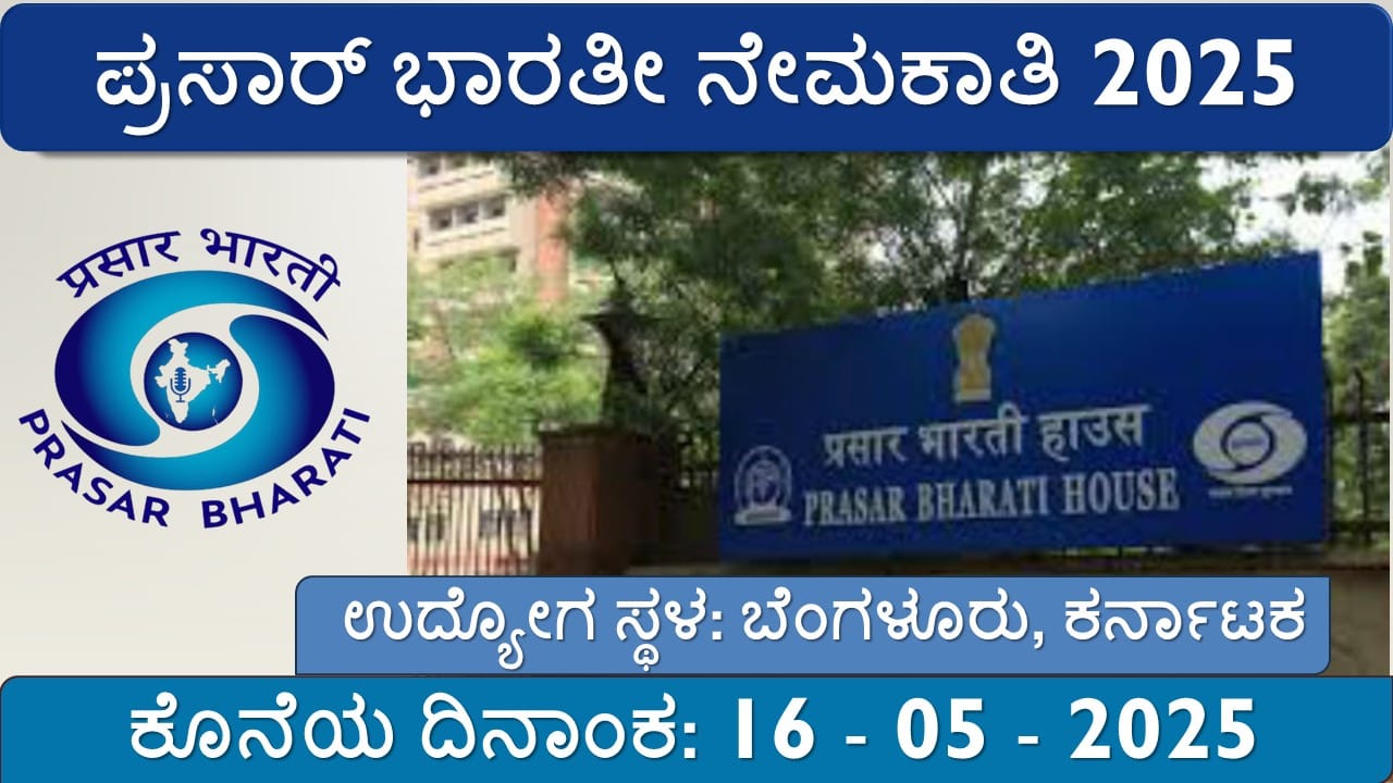 ಪ್ರಸಾರ್ ಭಾರತೀ ನೇಮಕಾತಿ 2025: ಕರ್ನಾಟಕ ರಾಜ್ಯದ ಸುದ್ದಿ ಘಟಕದಲ್ಲಿ ಸ್ಟ್ರಿಂಗರ್ ಹುದ್ದೆಗಳಿಗೆ ಅರ್ಹ ಮತ್ತು ಆಸಕ್ತ ಅಭ್ಯರ್ಥಿಗಳಿಂದ ಅರ್ಜಿಗಳನ್ನು ಆಹ್ವಾನಿಸಲಾಗಿದೆ. ಇಚ್ಛೆಯುಳ್ಳವರು 2025 ಮೇ 16ರೊಳಗೆ