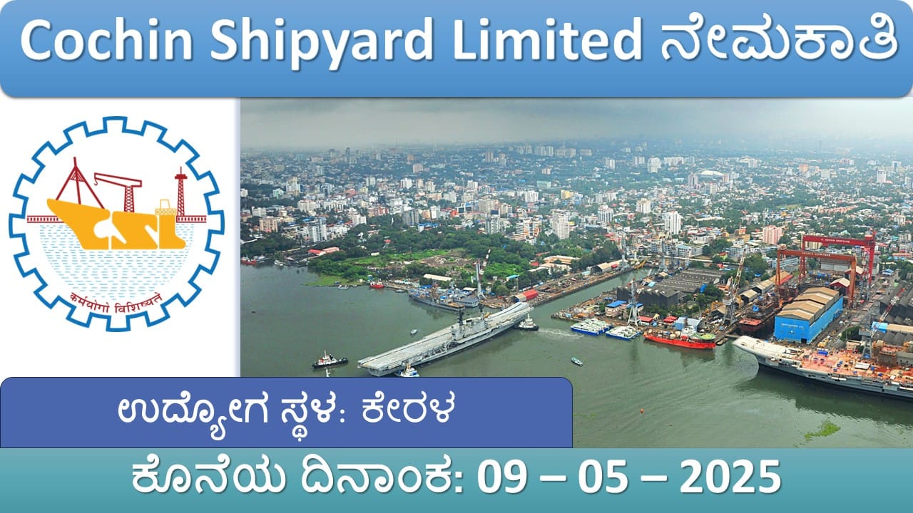 🏛️ ಸಂಸ್ಥೆ ಹೆಸರು:Cochin Shipyard Limited 📍 ಉದ್ಯೋಗ ಸ್ಥಳ:ಕೊಚ್ಚಿ – ಕೇರಳ 🧾 ಹುದ್ದೆಯ ಹೆಸರು:Instructor (Marine Engineering) 💰 ವೇತನ:ರೂ. 43,750/- ಪ್ರತಿಮಾಸ ಅರ್ಹತಾ