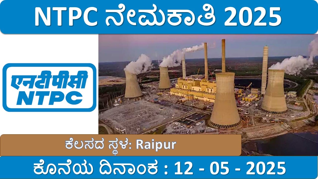 NTPC Recruitment 2025: ನ್ಯಾಷನಲ್ ಥರ್ಮಲ್ ಪವರ್ ಕಾರ್ಪೊರೇಶನ್ ಲಿಮಿಟೆಡ್ (NTPC), ರಾಯ್ಪುರ್ – ಛತ್ತೀಸ್ಗಢನಲ್ಲಿ ಖಾಲಿ ಇರುವ ಅಸೋಸಿಯೇಟ್ (Associate) ಹುದ್ದೆಗಳಿಗೆ ಅರ್ಹ ಅಭ್ಯರ್ಥಿಗಳಿಂದ ಆನ್ಲೈನ್