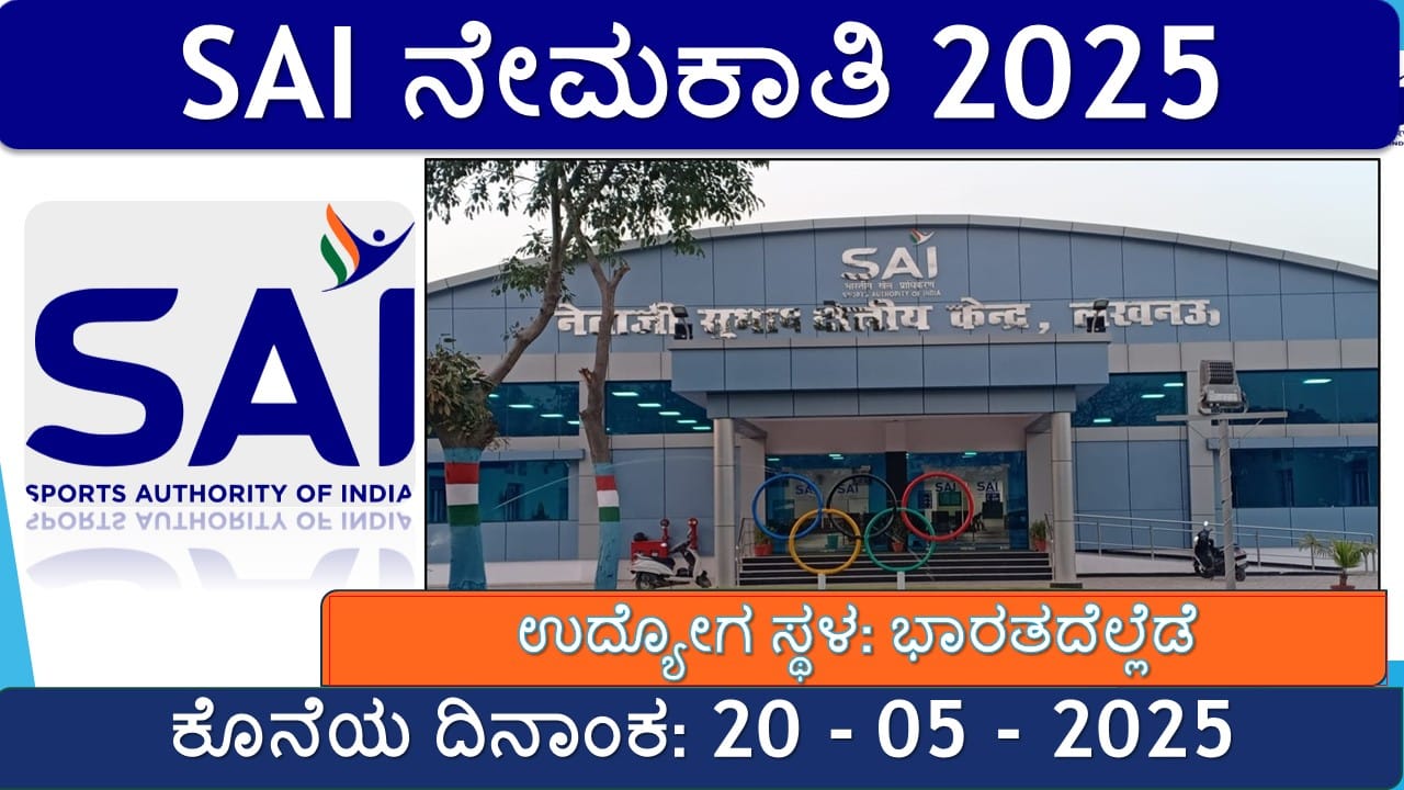 🏅 Sports Authority of India (SAI) 2025ನೇ ಸಾಲಿನಲ್ಲಿ ಯುವ ವೃತ್ತಿಪರ (Young Professional) ಹುದ್ದೆಗಳ ನೇಮಕಾತಿಗೆ ಅಧಿಕೃತ ಅಧಿಸೂಚನೆ ಬಿಡುಗಡೆ ಮಾಡಲಾಗಿದೆ. ಭಾರತದೆಲ್ಲೆಡೆ ಸರ್ಕಾರಿ