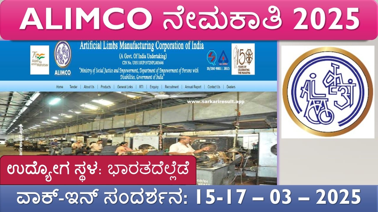 ಕಂಪನಿ ಹೆಸರು:Artificial Limbs Manufacturing Corporation of India (ALIMCO) ಒಟ್ಟು ಹುದ್ದೆಗಳ ಸಂಖ್ಯೆ:12 ಹುದ್ದೆಗಳ ಹೆಸರು: ಕೆಲಸದ ಸ್ಥಳ:ಕಾನ್ಪುರ್ – ಉತ್ತರ ಪ್ರದೇಶ ಮತ್ತು ಭಾರತದೆಲ್ಲೆಡೆ