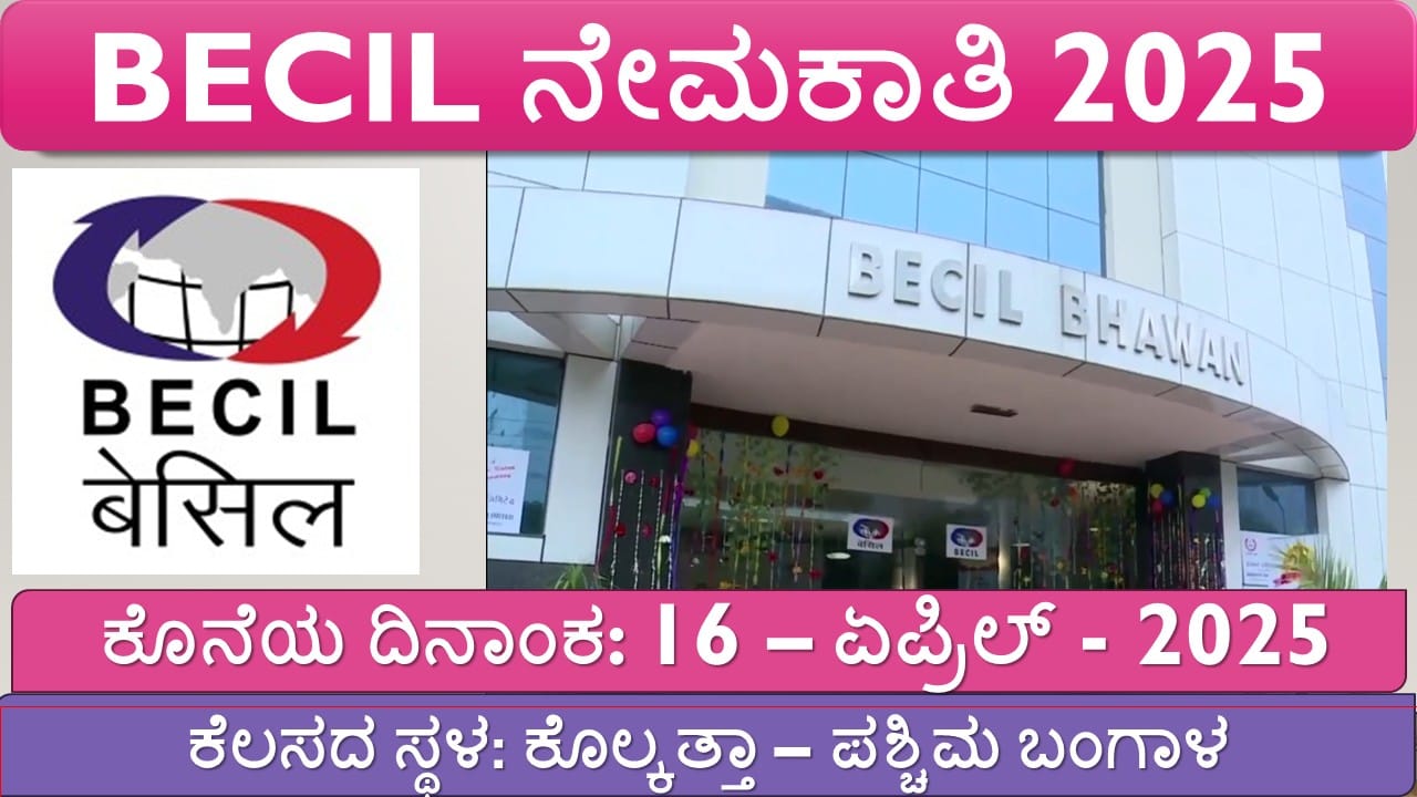 ಇದೇ ಬ್ರಾಡ್ಕಾಸ್ಟ್ ಎಂಜಿನಿಯರಿಂಗ್ ಕನ್ಸಲ್ಟೆಂಟ್ಸ್ ಇಂಡಿಯಾ ಲಿಮಿಟೆಡ್ (BECIL) ನಿಂದ 2025ನೇ ಸಾಲಿನ ನೇಮಕಾತಿ ಪ್ರಕಟಣೆ ಬಂದಿದೆ. ಈ ಮೂಲಕ ಸಾಮಾಜಿಕ ಕಾರ್ಮಿಕ, PICU ತಂತ್ರಜ್ಞ (Technician)
