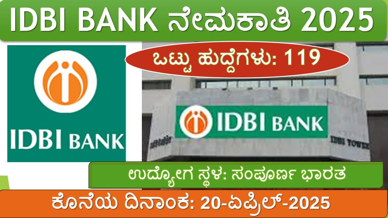 IDBI ಬ್ಯಾಂಕ್ ನೇಮಕಾತಿ 2025: 119 ಸ್ಪೆಷಾಲಿಸ್ಟ್ ಕ್ಯಾಡ್ರ್ ಆಫೀಸರ್ಸ್ ಹುದ್ದೆಗಳಿಗೆ ಅರ್ಜಿ ಸಲ್ಲಿಸಿ. ಇಂಡಸ್ಟ್ರಿಯಲ್ ಡೆವಲಪ್ಮೆಂಟ್ ಬ್ಯಾಂಕ್ ಆಫ್ ಇಂಡಿಯಾ (IDBI ಬ್ಯಾಂಕ್) ಅರ್ಹ ಮತ್ತು