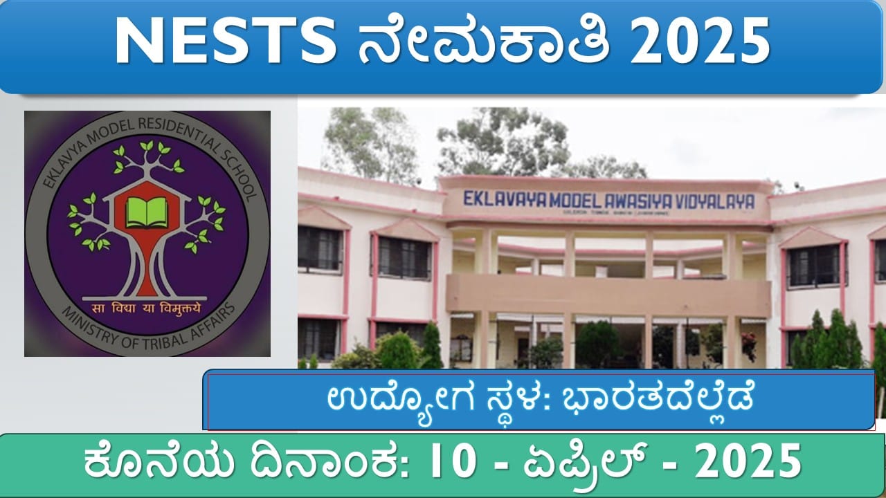 ಸಂಸ್ಥೆ ಹೆಸರು: ನ್ಯಾಷನಲ್ ಎಡ್ಯುಕೇಶನ್ ಸೋಸೈಟಿ ಫಾರ್ ಟ್ರೈಬಲ್ ಸ್ಟೂಡೆಂಟ್ಸ್ (NESTS)ಒಟ್ಟು ಹುದ್ದೆಗಳು: 02ಹುದ್ದೆಯ ಹೆಸರು: ಕನ್ಸಲ್ಟೆಂಟ್ (ಮಾನವ ಸಂಪನ್ಮೂಲ – HR)ಕೆಲಸದ ಸ್ಥಳ: ಭಾರತದೆಲ್ಲೆಡೆವೇತನ: NESTS