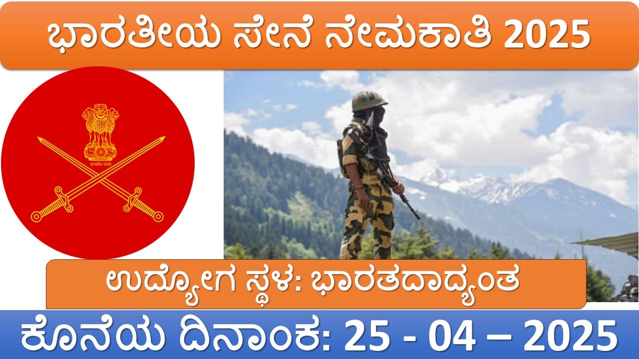 ಇದೇ ಭಾರತೀಯ ಸೇನೆ (Indian Army) ಯಿಂದ 2025ನೇ ಸಾಲಿಗೆ ಅಗ್ನಿವೀರ್ (Agniveer) ಹುದ್ದೆಗಳ ನೇಮಕಾತಿಗೆ ಅಧಿಕೃತ ಅಧಿಸೂಚನೆ ಪ್ರಕಟವಾಗಿದೆ. ಆಸಕ್ತ ಮತ್ತು ಅರ್ಹ ಅಭ್ಯರ್ಥಿಗಳು 2025