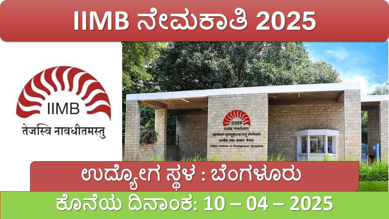 ಭಾರತೀಯ ನಿರ್ವಹಣಾ ಸಂಸ್ಥೆ ಬೆಂಗಳೂರು (IIMB) ಅಧಿಕೃತ ಭಾಷಾ ಸಹಾಯಕ ವ್ಯವಸ್ಥಾಪಕ (Assistant Manager – Official Language) ಹುದ್ದೆಗಳ ನೇಮಕಾತಿಗೆ ಅಧಿಸೂಚನೆ ಹೊರಡಿಸಿದೆ. ಬೆಂಗಳೂರು –
