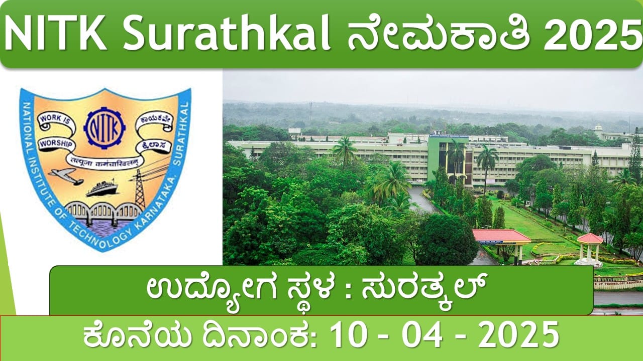 ನ್ಯಾಷನಲ್ ಇನ್ಸ್ಟಿಟ್ಯೂಟ್ ಆಫ್ ಟೆಕ್ನಾಲಜಿ ಕರ್ನಾಟಕ (NIT Karnataka), ಸುರತ್ಕಲ್ – ಕರ್ನಾಟಕ ನಲ್ಲಿ ಸಂಶೋಧನಾ ಸಹಾಯಕ (Research Associate) ಮತ್ತು ಪ್ರಾಜೆಕ್ಟ್ ಸಹಾಯಕ (Project Associate)