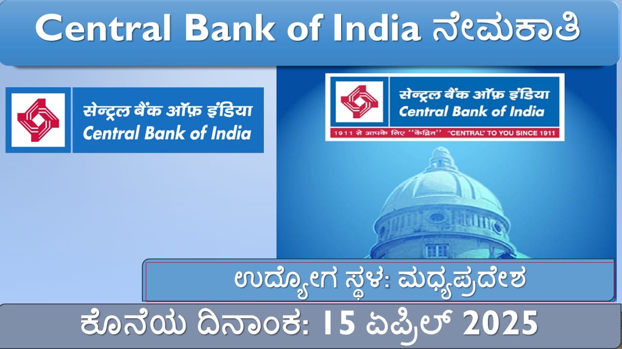 Central Bank of India (CBI) ಒಪ್ಪಂದ ಆಧಾರಿತವಾಗಿ ಶಿಕ್ಷಕ (Teacher), ಕಚೇರಿ ಸಹಾಯಕ (Office Assistant), ಅಟೆಂಡರ್ (Attender) ಮತ್ತು ವಾಚ್ಮನ್/ಗಾರ್ಡನರ್ (Watchman/Gardener) ಹುದ್ದೆಗಳಿಗೆ ಅರ್ಹ ಅಭ್ಯರ್ಥಿಗಳಿಂದ ಅರ್ಜಿಗಳನ್ನು ಆಹ್ವಾನಿಸಿದೆ. ಕೊನೆಯ