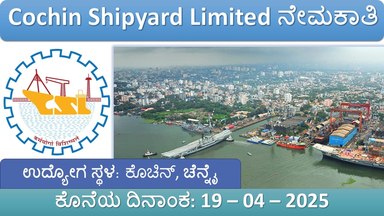 ಕೊಚ್ಚಿನ್ ಶಿಪ್ಯಾರ್ಡ್ ಲಿಮಿಟೆಡ್ ನೇಮಕಾತಿ 2025: 24 ಪ್ರಾಜೆಕ್ಟ್ ಆಫೀಸರ್, ಲೈಜಾನ್ ಪ್ರತಿನಿಧಿ ಹುದ್ದೆಗಳಿಗೆ ಅರ್ಜಿ ಆಹ್ವಾನಿಸಲಾಗಿದೆ. ಕೊಚ್ಚಿನ್ ಶಿಪ್ಯಾರ್ಡ್ ಲಿಮಿಟೆಡ್ ಈ ಹುದ್ದೆಗಳನ್ನು ಭರ್ತಿ ಮಾಡಲು