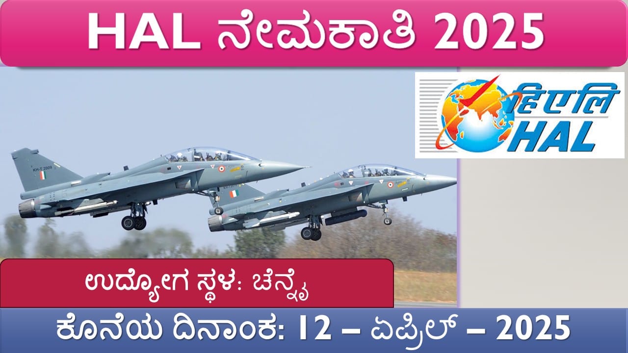 ಹಿಂದೂಸ್ತಾನ್ ಏರೋನಾಟಿಕ್ಸ್ ಲಿಮಿಟೆಡ್ (HAL India) 8 ಏರ್ಕ್ರಾಫ್ಟ್ ಟೆಕ್ನೀಷಿಯನ್ ಹುದ್ದೆಗಳಿಗೆ ಚೆನ್ನೈ – ತಮಿಳುನಾಡು ಪ್ರದೇಶದಲ್ಲಿ ನೇಮಕಾತಿ ನಡೆಸುತ್ತಿದೆ. ಆಸಕ್ತರು 12-ಏಪ್ರಿಲ್-2025 ಒಳಗಾಗಿ ಆಫ್ಲೈನ್ ಮೂಲಕ
