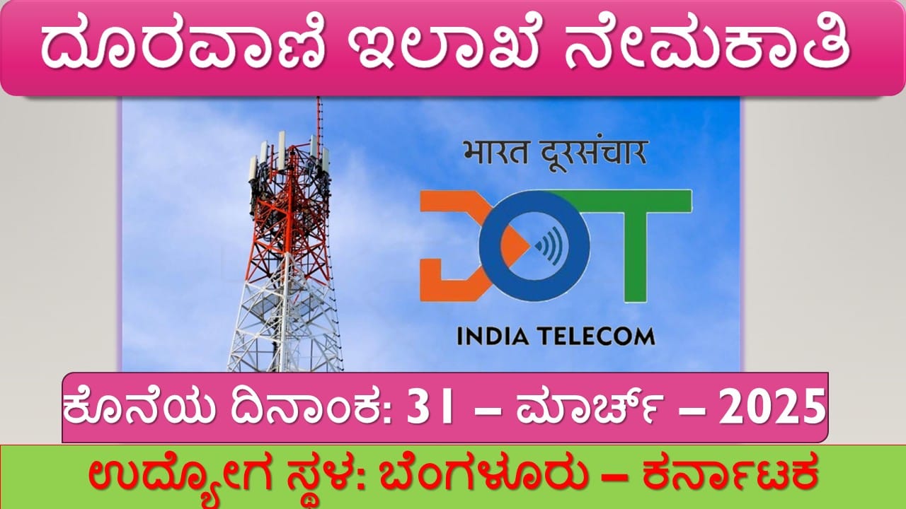 DOT ನೇಮಕಾತಿ 2025: 03 LDC (ಲೋಯರ್ ಡಿವಿಷನ್ ಕ್ಲರ್ಕ್) ಮತ್ತು ಟೆಲಿಕಾಂ ಅಸಿಸ್ಟೆಂಟ್ ಹುದ್ದೆಗಳಿಗಾಗಿ ಅರ್ಜಿ ಆಹ್ವಾನಿಸಲಾಗಿದೆ. ದೂರವಾಣಿ ಇಲಾಖೆ (DOT) ಫೆಬ್ರವರಿ 2025ರಲ್ಲಿ ಅಧಿಕೃತ
