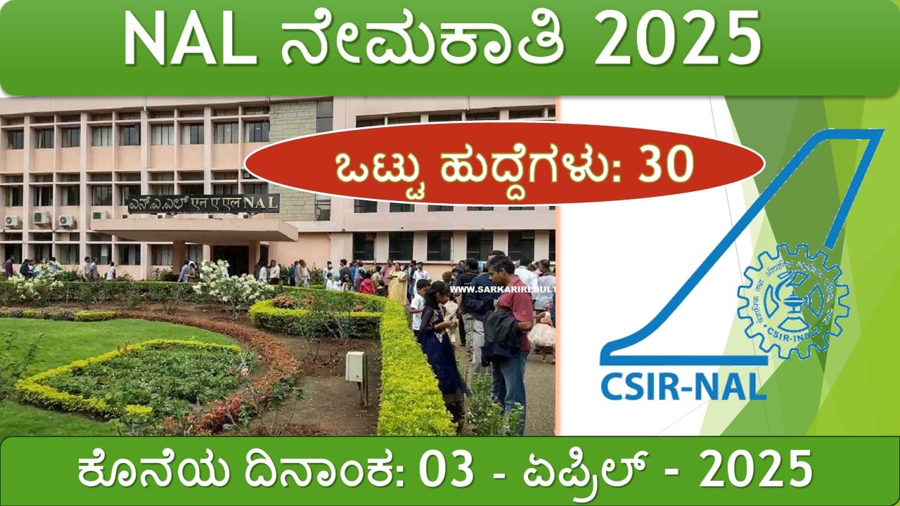 NAL ನೇಮಕಾತಿ 2025: 30 ವಿಜ್ಞಾನಿ ಹುದ್ದೆಗಳಿಗಾಗಿ ಅರ್ಜಿ ಸಲ್ಲಿಸಿ. ನ್ಯಾಷನಲ್ ಏರೋಸ್ಪೇಸ್ ಲ್ಯಾಬರೇಟರಿ (NAL) ಅವರು ಅಭ್ಯರ್ಥಿಗಳನ್ನು ಆಯ್ಕೆ ಮಾಡಲು ಫೆಬ್ರವರಿ 2025ರ ಅಧಿಕೃತ ಸೂಚನೆಯನ್ನು