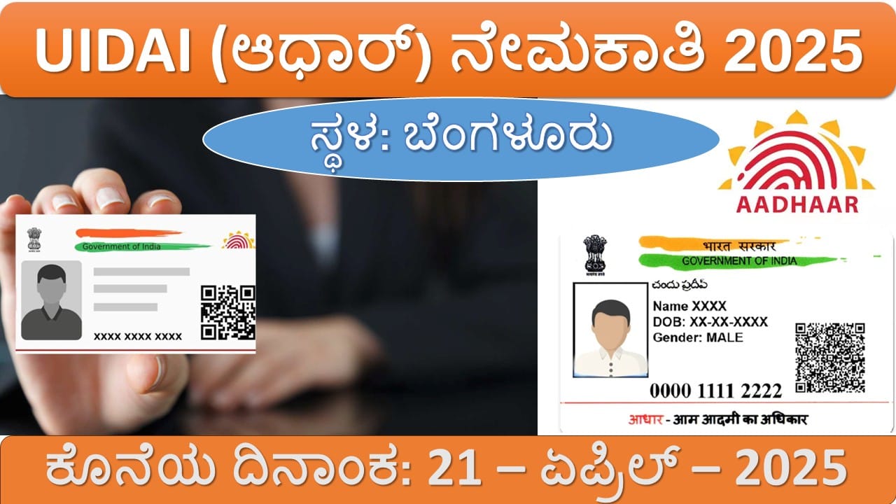 UIDAI ನೇಮಕಾತಿ 2025: 05 ವಿಭಾಗ ಅಧಿಕಾರಿ ಮತ್ತು ತಾಂತ್ರಿಕ ಅಧಿಕಾರಿ ಹುದ್ದೆಗಳಿಗಾಗಿ ಅರ್ಜಿ ಸಲ್ಲಿಸಲು ಅವಕಾಶವಿದೆ. ಯೂನಿಕ್ ಐಡೆಂಟಿಫಿಕೇಶನ್ ಅಥಾರಿಟಿ ಆಫ್ ಇಂಡಿಯಾ (UIDAI) ಫೆಬ್ರವರಿ