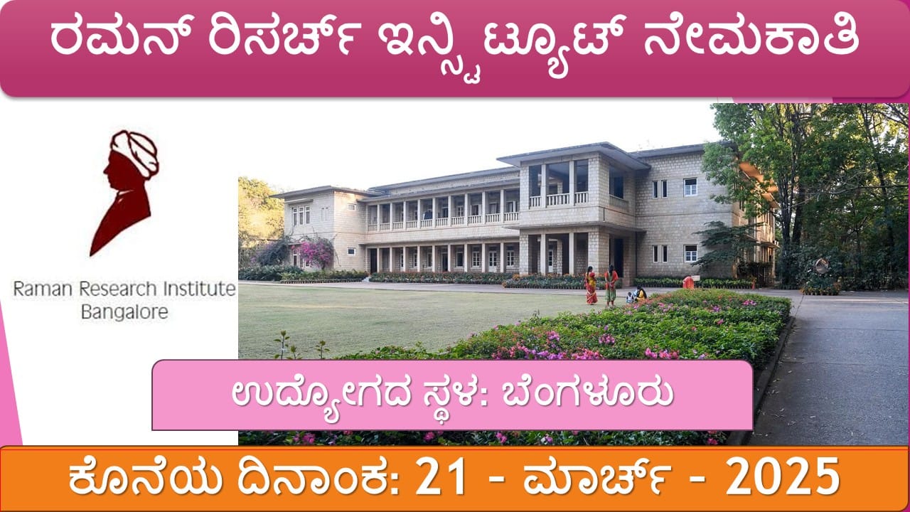 RRI ನೇಮಕಾತಿ 2025: ರಾಮನ್ ರಿಸರ್ಚ್ ಇನ್ಸ್ಟಿಟ್ಯೂಟ್ (RRI) 02 ರಿಸರ್ಚ್ ಅಸಿಸ್ಟೆಂಟ್ ಹುದ್ದೆಗಳಿಗಾಗಿ ಅರ್ಜಿ ಆಹ್ವಾನಿಸಿದೆ. 2025 ರ ಫೆಬ್ರವರಿ ತಿಂಗಳಲ್ಲಿ ಪ್ರಕಟವಾದ ಈ ಅಧಿಸೂಚನೆಯಲ್ಲಿ,