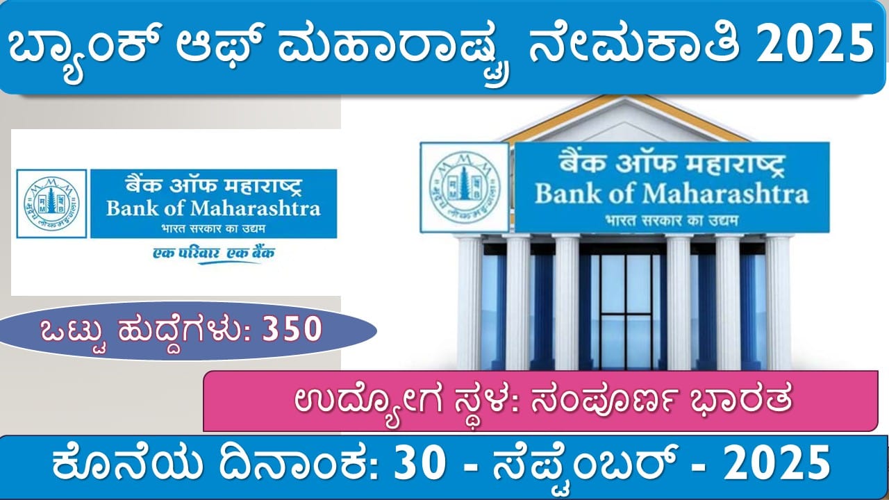 ಬ್ಯಾಂಕ್ ಆಫ್ ಮಹಾರಾಷ್ಟ್ರ ನೇಮಕಾತಿ 2025: ಒಟ್ಟು 350 ಮ್ಯಾನೇಜರ್ ಹುದ್ದೆಗಳ ಭರ್ತಿಗಾಗಿ ಬ್ಯಾಂಕ್ ಆಫ್ ಮಹಾರಾಷ್ಟ್ರ ಅರ್ಹ ಮತ್ತು ಆಸಕ್ತ ಅಭ್ಯರ್ಥಿಗಳಿಂದ ಅರ್ಜಿಗಳನ್ನು ಆಹ್ವಾನಿಸಿದೆ. ಅಧಿಕೃತ […]