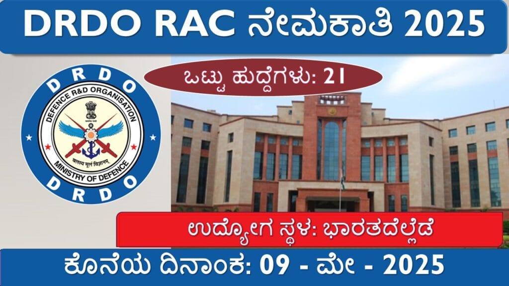 🧪 DRDO RAC ನೇಮಕಾತಿ 2025 – 21 ಸೈಂಟಿಸ್ಟ್ ಹುದ್ದೆಗಳ ಆನ್ಲೈನ್ ಅರ್ಜಿ