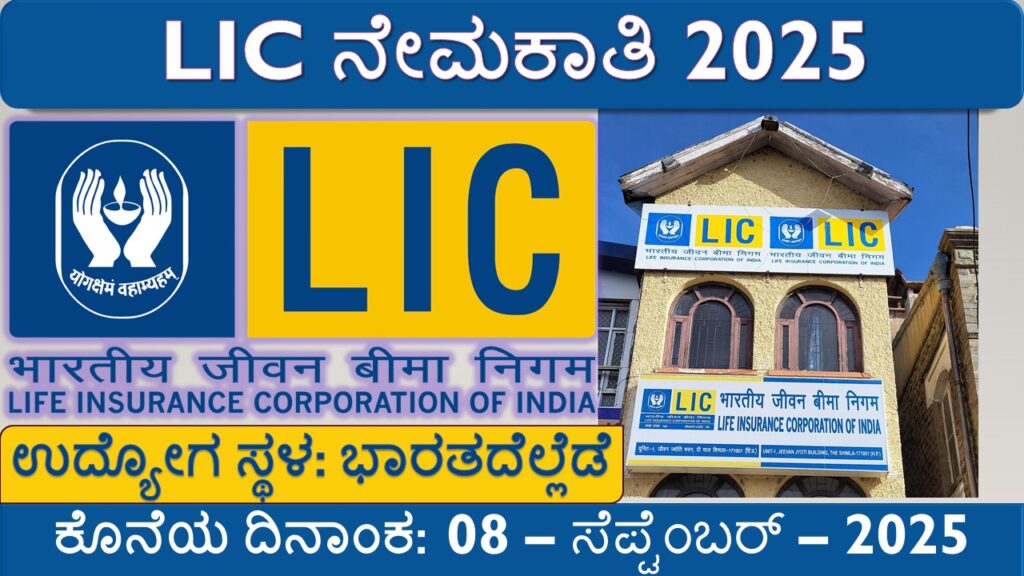 ⏳ ವಯೋಮಿತಿ ರಿಯಾಯಿತಿ OBC ಅಭ್ಯರ್ಥಿಗಳು: 03 ವರ್ಷ SC/ST ಅಭ್ಯರ್ಥಿಗಳು: 05 ವರ್ಷ PwBD (General): 10 ವರ್ಷ PwBD (OBC): 13 ವರ್ಷ PwBD (SC/ST): 15 ವರ್ಷ 💰 ಅರ್ಜಿ ಶುಲ್ಕ ಇತರ ಎಲ್ಲಾ ಅಭ್ಯರ್ಥಿಗಳು: ₹700/- SC/ST/PwBD ಅಭ್ಯರ್ಥಿಗಳು: ₹85/- ಪಾವತಿ ವಿಧಾನ: ಆನ್ಲೈನ್⚡ ಆಯ್ಕೆ ಪ್ರಕ್ರಿಯೆ ಪ್ರಾಥಮಿಕ ಪರೀಕ್ಷೆ (Preliminary Exam) ಮುಖ್ಯ ಪರೀಕ್ಷೆ (Mains Exam) ಸಂದರ್ಶನ (Interview) 🖊️ ಅರ್ಜಿ ಸಲ್ಲಿಸುವ ವಿಧಾನ ಮೊದಲು LIC ನೇಮಕಾತಿ ಪ್ರಕಟಣೆಯನ್ನು ಸಂಪೂರ್ಣವಾಗಿ ಓದಿ, ಅರ್ಹತೆಯನ್ನು ಪರಿಶೀಲಿಸಿ. ಮಾನ್ಯವಾದ ಇಮೇಲ್ ಐಡಿ ಮತ್ತು ಮೊಬೈಲ್ ನಂಬರ್ ಇರಲಿ. ಅಗತ್ಯ ದಾಖಲೆಗಳು (ID ಪ್ರೂಫ್, ವಿದ್ಯಾರ್ಹತೆ, ವಯಸ್ಸಿನ ಪ್ರಮಾಣ, ಫೋಟೋ, ರೆಸ್ಯೂಮ್ ಇತ್ಯಾದಿ) ಸಿದ್ಧಪಡಿಸಿಕೊಳ್ಳಿ. “LIC Apply Online” ಲಿಂಕ್ ಕ್ಲಿಕ್ ಮಾಡಿ. ಅರ್ಜಿ ಫಾರ್ಮ್ನಲ್ಲಿ ಅಗತ್ಯ ವಿವರಗಳನ್ನು ಭರ್ತಿ ಮಾಡಿ ಮತ್ತು ದಾಖಲೆಗಳನ್ನು ಅಪ್ಲೋಡ್ ಮಾಡಿ. ಅರ್ಜಿ ಶುಲ್ಕವನ್ನು ಪಾವತಿಸಿ. ಕೊನೆಗೆ Submit ಬಟನ್ ಕ್ಲಿಕ್ ಮಾಡಿ. ಅರ್ಜಿ ಸಂಖ್ಯೆ/ರಿಕ್ವೆಸ್ಟ್ ನಂಬರ್ನ್ನು ಸುರಕ್ಷಿತವಾಗಿ ಕಾಯ್ದಿಡಿ. 📅 ಮುಖ್ಯ ದಿನಾಂಕಗಳು ಆನ್ಲೈನ್ ಅರ್ಜಿ ಪ್ರಾರಂಭ ದಿನಾಂಕ: 16-ಆಗಸ್ಟ್-2025 ಆನ್ಲೈನ್ ಅರ್ಜಿ ಕೊನೆಯ ದಿನಾಂಕ ಮತ್ತು ಶುಲ್ಕ ಪಾವತಿ ದಿನಾಂಕ: 08-ಸೆಪ್ಟೆಂಬರ್-2025 ಪ್ರವೇಶಪತ್ರ (Call Letter) ಲಭ್ಯವಾಗುವ ದಿನಾಂಕ: ಪರೀಕ್ಷೆಗೆ 7 ದಿನಗಳ ಮೊದಲು ಪ್ರಾಥಮಿಕ ಪರೀಕ್ಷೆ (Preliminary): 03-ಅಕ್ಟೋಬರ್-2025 ಮುಖ್ಯ ಪರೀಕ್ಷೆ (Mains): 08-ನವೆಂಬರ್-2025 🔗 ಪ್ರಮುಖ ಲಿಂಕುಗಳು [ಅಧಿಕೃತ ಪ್ರಕಟಣೆ – ಅಸಿಸ್ಟೆಂಟ್ ಇಂಜಿನಿಯರ್, ಅಸಿಸ್ಟೆಂಟ್ ಆಡ್ಮಿನಿಸ್ಟ್ರೇಟಿವ್ ಆಫೀಸರ್ (Specialist) – Click Here ] [ಅಧಿಕೃತ ಪ್ರಕಟಣೆ – ಅಸಿಸ್ಟೆಂಟ್ ಆಡ್ಮಿನಿಸ್ಟ್ರೇಟಿವ್ ಆಫೀಸರ್ (Generalist 32nd Batch) – Click Here ] [Apply Online – Click Here ] [ಅಧಿಕೃತ ವೆಬ್ಸೈಟ್ – licindia.in ]