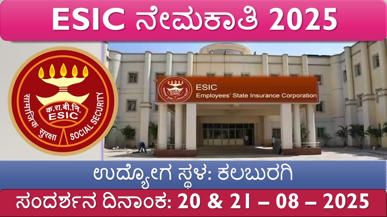 ESIC ಕರ್ನಾಟಕ ನೇಮಕಾತಿ 2025: ಎಂಪ್ಲಾಯೀಸ್ ಸ್ಟೇಟ್ ಇನ್ಸುರನ್ಸ್ ಕಾರ್ಪೊರೇಷನ್ (ESIC) ಕರ್ನಾಟಕವು 14 ಪ್ರೊಫೆಸರ್, ಅಸೋಸಿಯೇಟ್ ಪ್ರೊಫೆಸರ್, ಅಸಿಸ್ಟೆಂಟ್ ಪ್ರೊಫೆಸರ್ ಹುದ್ದೆಗಳನ್ನು ಭರ್ತಿ ಮಾಡಲು ಅಧಿಕೃತ