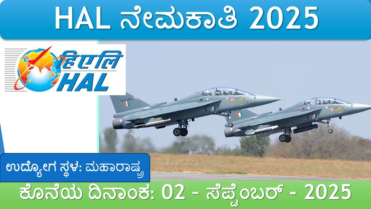 HAL India Recruitment 2025: ಹಿಂದೂಸ್ತಾನ್ ಏರೋನಾಟಿಕ್ಸ್ ಲಿಮಿಟೆಡ್ (HAL), ನಾಶಿಕ್–ಮಹಾರಾಷ್ಟ್ರದಲ್ಲಿ 588 ಅಪ್ರೆಂಟಿಸ್ ಹುದ್ದೆಗಳಿಗೆ ಅರ್ಜಿ ಆಹ್ವಾನಿಸಿದೆ. ಆಸಕ್ತರು 02 ಸೆಪ್ಟೆಂಬರ್ 2025 ರೊಳಗೆ ಆನ್ಲೈನ್