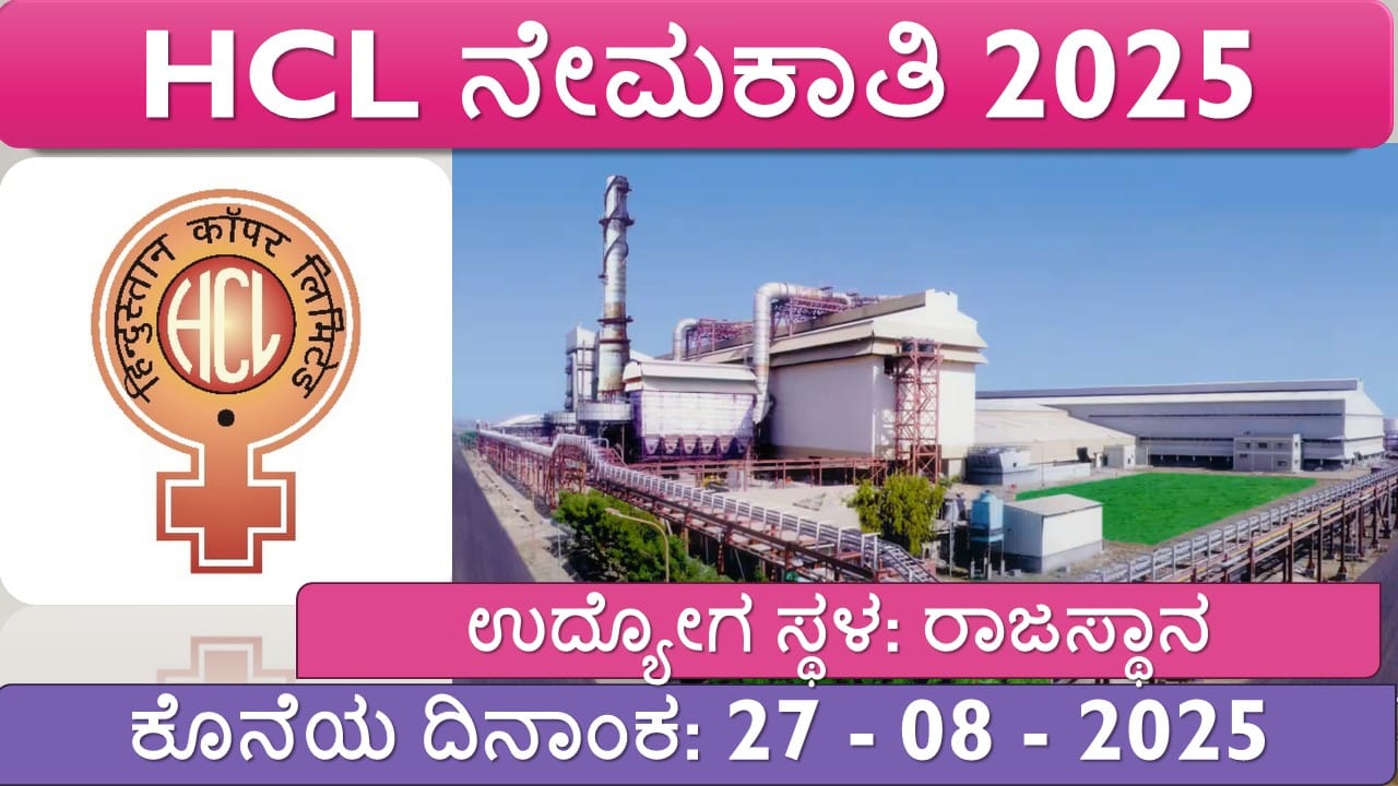 ಹಿಂದುಸ್ತಾನ್ ಕಾಪರ್ ನೇಮಕಾತಿ 2025: 167 ಟ್ರೇಡ್ ಅಪ್ರೆಂಟಿಸ್ ಹುದ್ದೆಗಳಿಗೆ ಅರ್ಜಿ ಆಹ್ವಾನಿಸಲಾಗಿದೆ. ಹಿಂದುಸ್ತಾನ್ ಕಾಪರ್ ಲಿಮಿಟೆಡ್ ಅಧಿಕೃತ ಪ್ರಕಟಣೆ (ಆಗಸ್ಟ್ 2025) ಮೂಲಕ ಅರ್ಹ ಹಾಗೂ