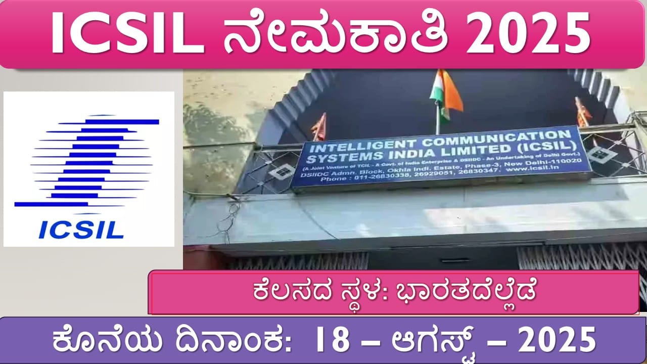 ICSIL ನೇಮಕಾತಿ 2025: 03 ಅಸಿಸ್ಟೆಂಟ್ ಅಕೌಂಟ್ಸ್ ಎಕ್ಸಿಕ್ಯೂಟಿವ್ ಮತ್ತು ರಿಸೆಪ್ಷನಿಸ್ಟ್ ಹುದ್ದೆಗಳಿಗೆ ಅರ್ಜಿ ಆಹ್ವಾನಿಸಲಾಗಿದೆ. ಇಂಟೆಲಿಜೆಂಟ್ ಕಮ್ಯೂನಿಕೇಶನ್ ಸಿಸ್ಟಮ್ಸ್ ಇಂಡಿಯಾ ಲಿಮಿಟೆಡ್ (ICSIL) ಅಧಿಕೃತ ಪ್ರಕಟಣೆ