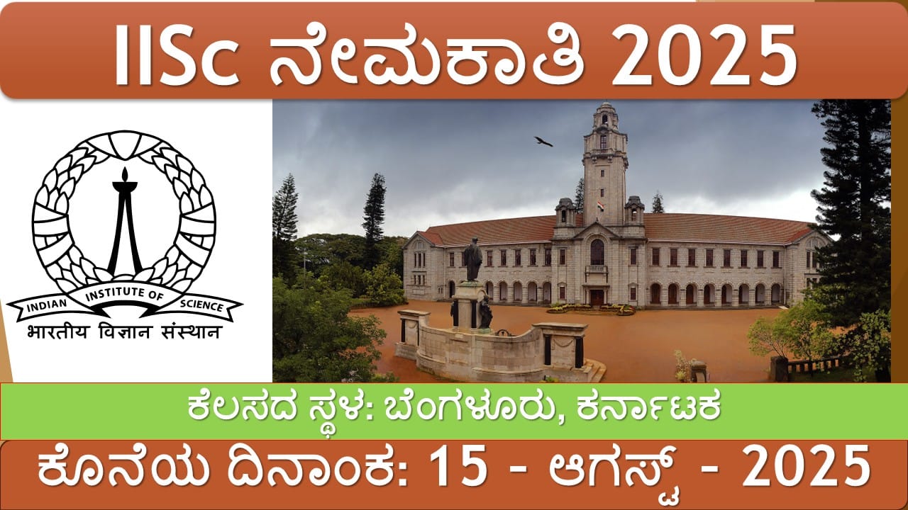 IISc ನೇಮಕಾತಿ 2025: ಪ್ರಾಜೆಕ್ಟ್ ಅಸಿಸ್ಟೆಂಟ್ ಹುದ್ದೆಗಳನ್ನು ಭರ್ತಿ ಮಾಡಲು ಭಾರತೀಯ ವಿಜ್ಞಾನ ಸಂಸ್ಥೆ (Indian Institute of Science) ಅಧಿಕೃತ ಅಧಿಸೂಚನೆ (ಆಗಸ್ಟ್ 2025) ಮೂಲಕ