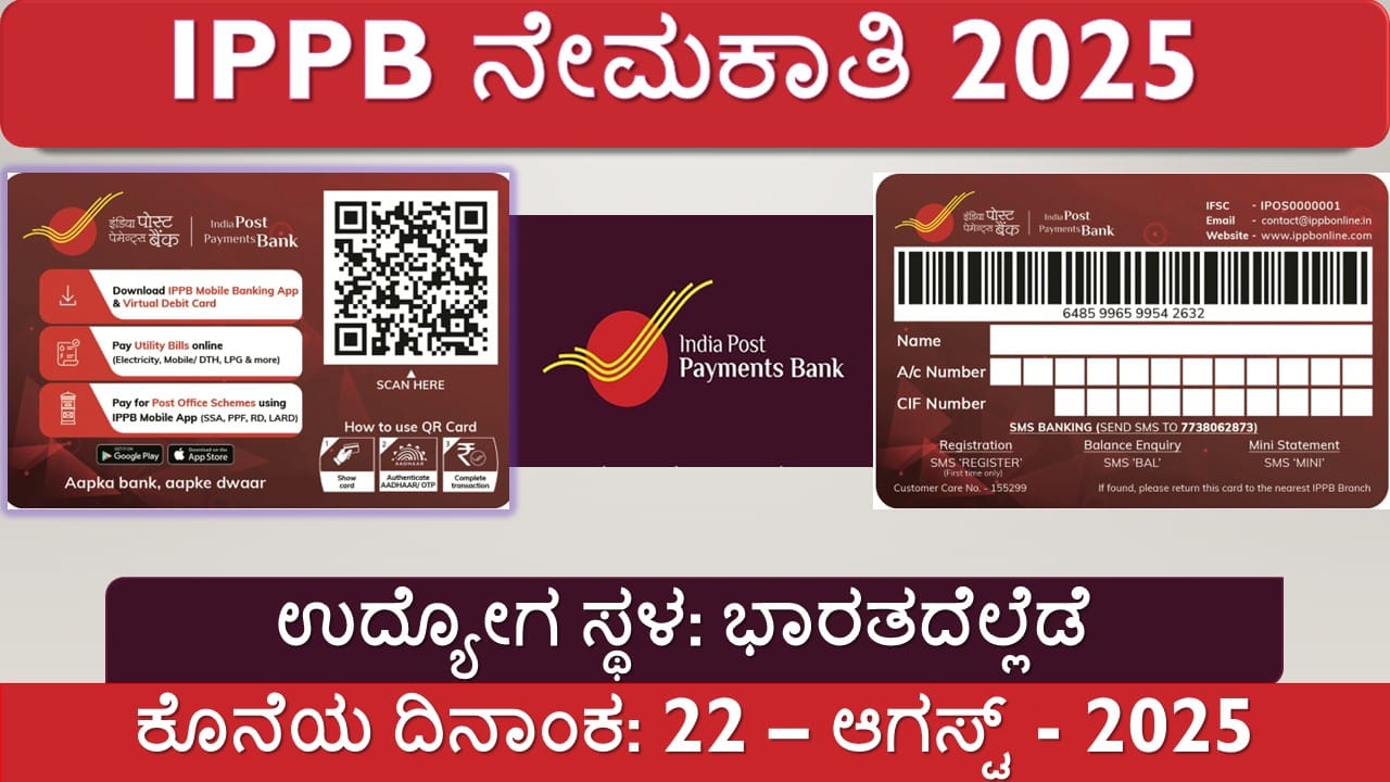 IPPB ನೇಮಕಾತಿ 2025: ಮುಖ್ಯ ಕಾರ್ಯನಿರ್ವಹಣಾಧಿಕಾರಿ (Chief Operating Officer), ಜನರಲ್ ಮ್ಯಾನೇಜರ್ ಹುದ್ದೆಗಳ 04 ಖಾಲಿ ಹುದ್ದೆಗಳಿಗೆ ಅರ್ಜಿ ಆಹ್ವಾನಿಸಲಾಗಿದೆ. ಇಂಡಿಯಾ ಪೋಸ್ಟ್ ಪೇಮೆಂಟ್ಸ್ ಬ್ಯಾಂಕ್