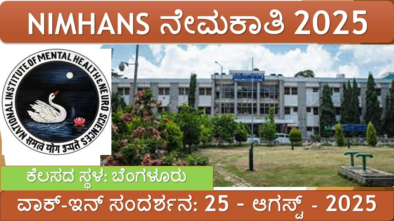 NIMHANS Recruitment 2025: ರಾಷ್ಟ್ರೀಯ ಮಾನಸಿಕ ಆರೋಗ್ಯ ಮತ್ತು ನರಶಾಸ್ತ್ರ ಸಂಸ್ಥೆ (NIMHANS) Post MD/DNB Senior Resident ಹುದ್ದೆಗಳಿಗಾಗಿ ಅರ್ಜಿಗಳನ್ನು ಆಹ್ವಾನಿಸಿದೆ. ಬೆಂಗಳೂರು – ಕರ್ನಾಟಕ