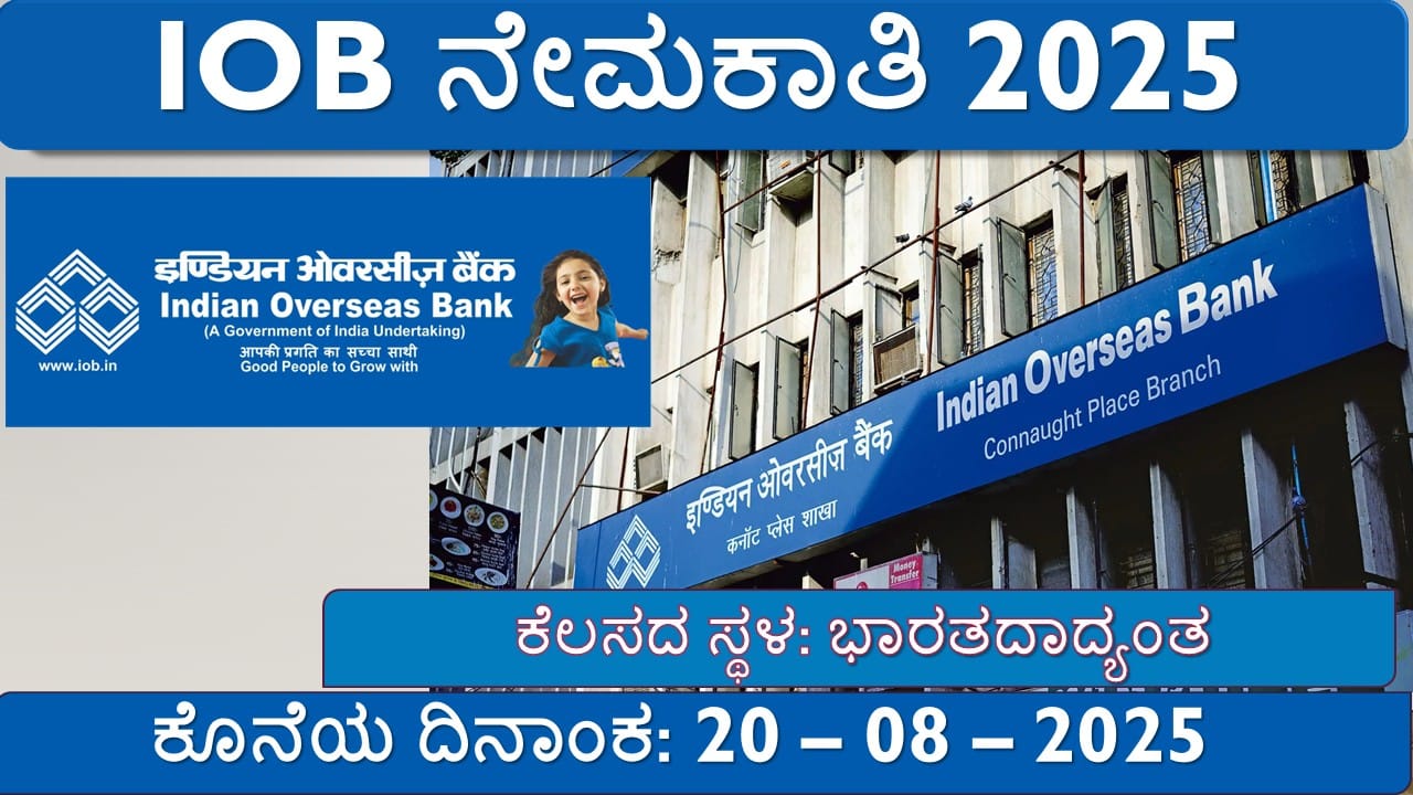 IOB ನೇಮಕಾತಿ 2025: 750 ಶಿಷ್ಯರ (Apprentices) ಹುದ್ದೆಗಳಿಗೆ ಅರ್ಜಿ ಆಹ್ವಾನಿಸಲಾಗಿದೆ. ಇಂಡಿಯನ್ ಓವರ್ಸೀಸ್ ಬ್ಯಾಂಕ್ (Indian Overseas Bank) ಅಧಿಕೃತ ಅಧಿಸೂಚನೆ ಆಗಸ್ಟ್ 2025 ಮೂಲಕ