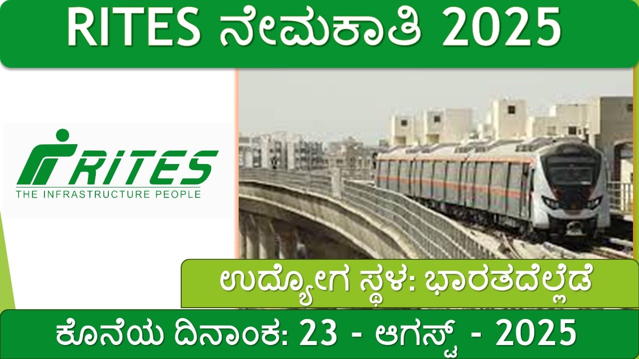 ರೈಟ್ಸ್ ನೇಮಕಾತಿ 2025: 14 ಎಂಜಿನಿಯರ್, ಮ್ಯಾನೇಜರ್ ಹುದ್ದೆಗಳ ಖಾಲಿ ಜಾಗಗಳಿಗಾಗಿ ಅರ್ಜಿ ಆಹ್ವಾನಿಸಲಾಗಿದೆ. ರೈಲ್ ಇಂಡಿಯಾ ಟೆಕ್ನಿಕಲ್ ಅಂಡ್ ಎಕನಾಮಿಕ್ ಸರ್ವಿಸಸ್ (RITES) ಜುಲೈ 2025ರ